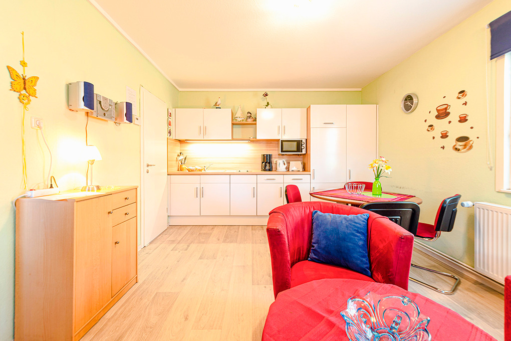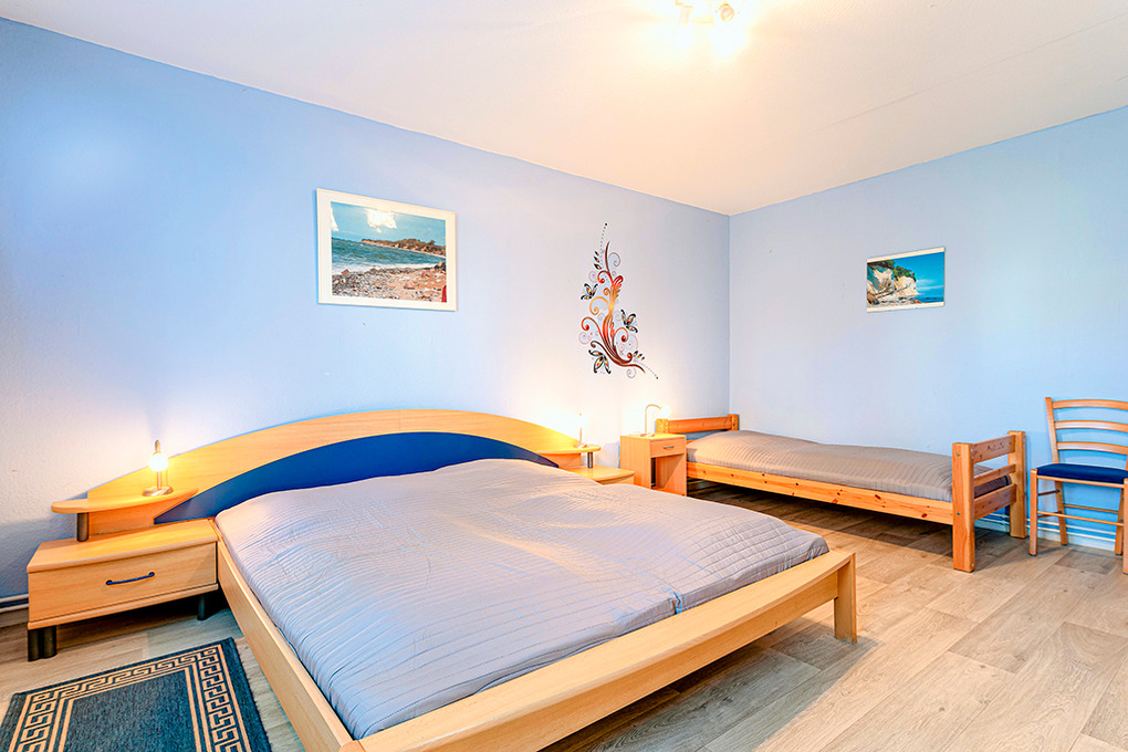 Ort: Glowe. Ruhige, idyllische Waldrandlage. Ostseestrand 400 m. Ortsmitte 800 m. Erlebniswelt "Splash" mit Schwimmbad, Sauna- und Wellnessbereich sowie Indoorspielplatz 7,5 km.