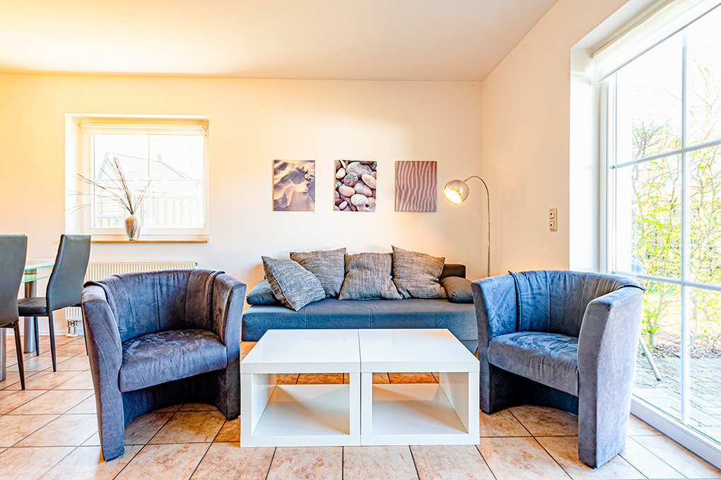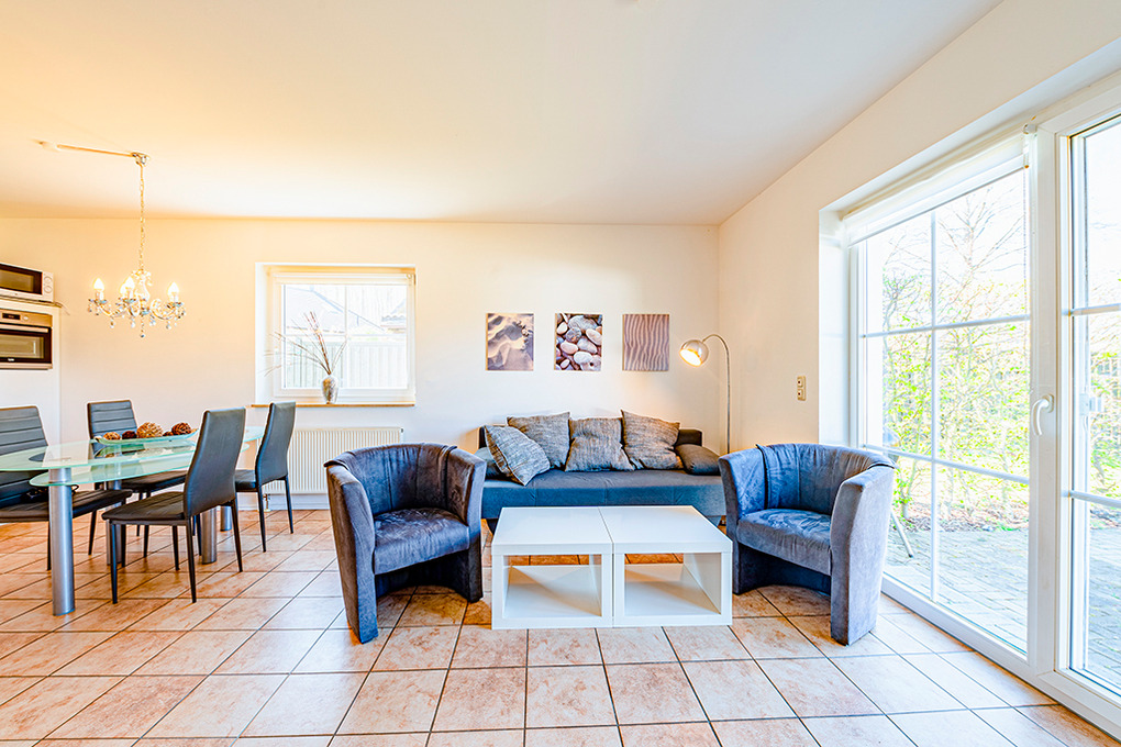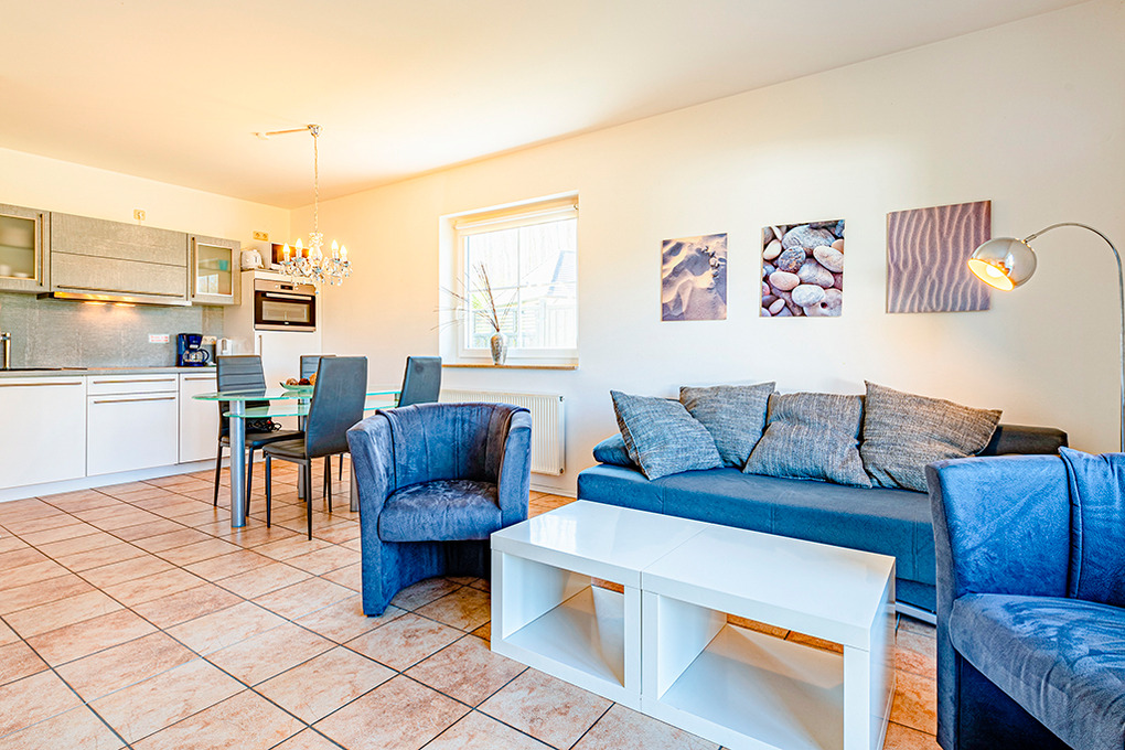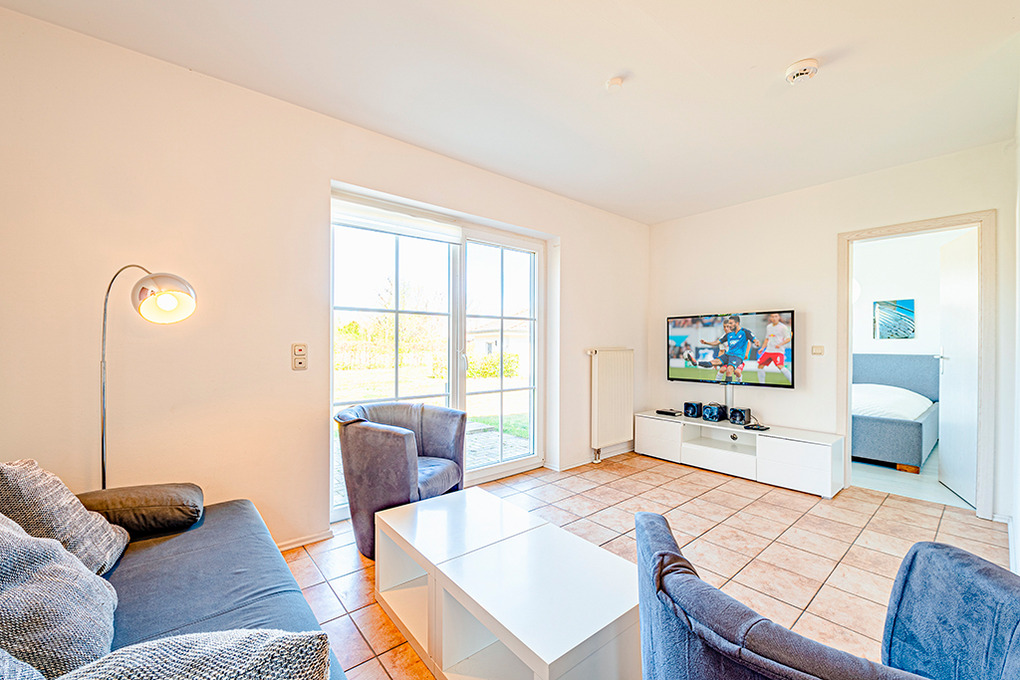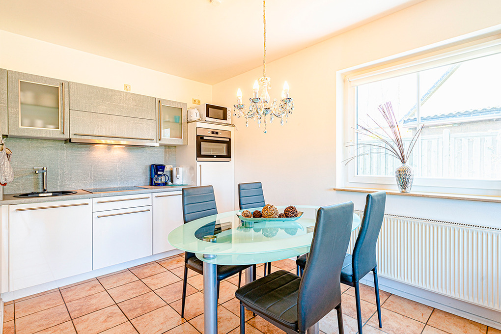 D 120.57 Wohnung 2-4 Pers.: 3-Zimmerwohnung mit 65 qm Wohnfläche, Parterre. Heller Wohn-/Essraum mit Couchgarnitur, Sat-TV, Radio/CD, Esstisch, Küchenzeile (Backofen, Mikrowelle, Spülmaschine). Doppelzimmer. 2-Bettzimmer. Bad/WC. Terrasse.