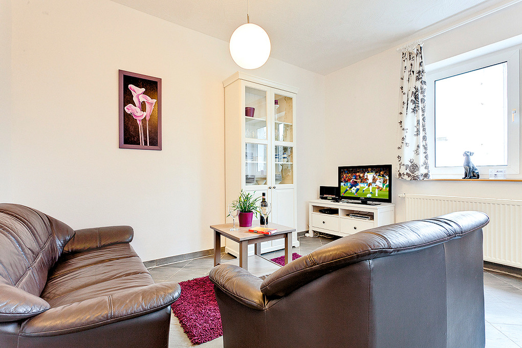 D 121.14 Wohnung 2-4 Pers.: 2-Zimmerwohnung, 46 qm Wohnfläche, Parterre. Schöner Wohn-/Essraum mit Couchgarnitur, Sat-TV, Esstisch, Küchenzeile (Backofen, Spülmaschine). 4-Bettzimmer mit Doppelbett, Etagenbett. Bad/WC. Sitz- und Grillmöglichkeit im Garten.