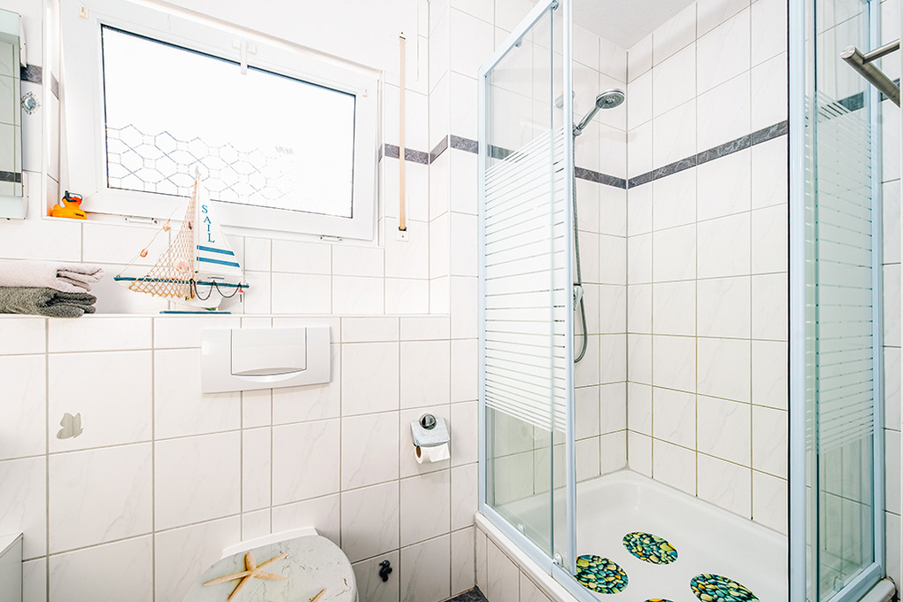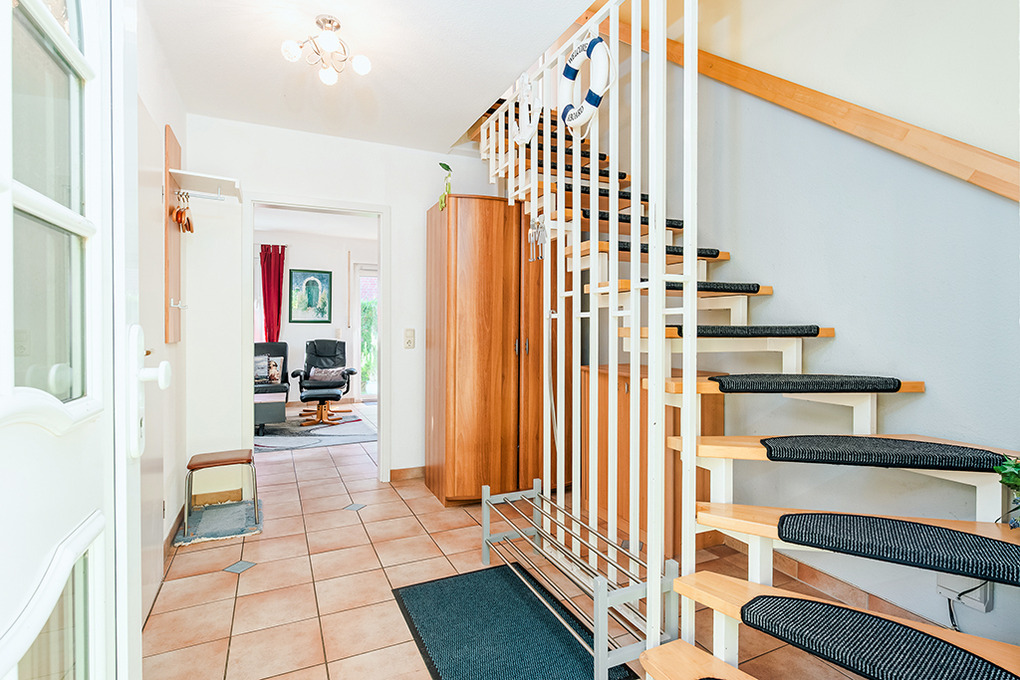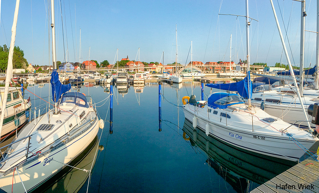 Ort: Wiek. Ruhige Lage in einer Wohnsiedlung. Badestelle am Bodden 500 m. Ideales Surf- und Kiterevier, Surfschule 450 m. Ortsmitte mit Hafenpromenade, Restaurants, Geschäften, Bootsverleih 650 m. Ostseestrand Juliusruh 5 km.