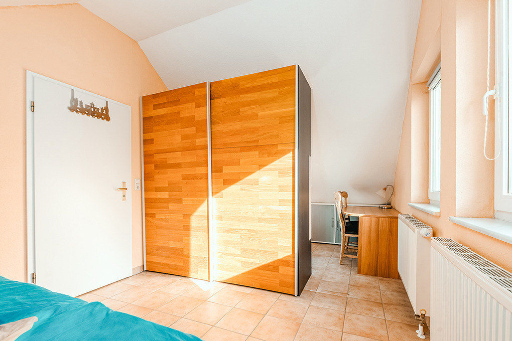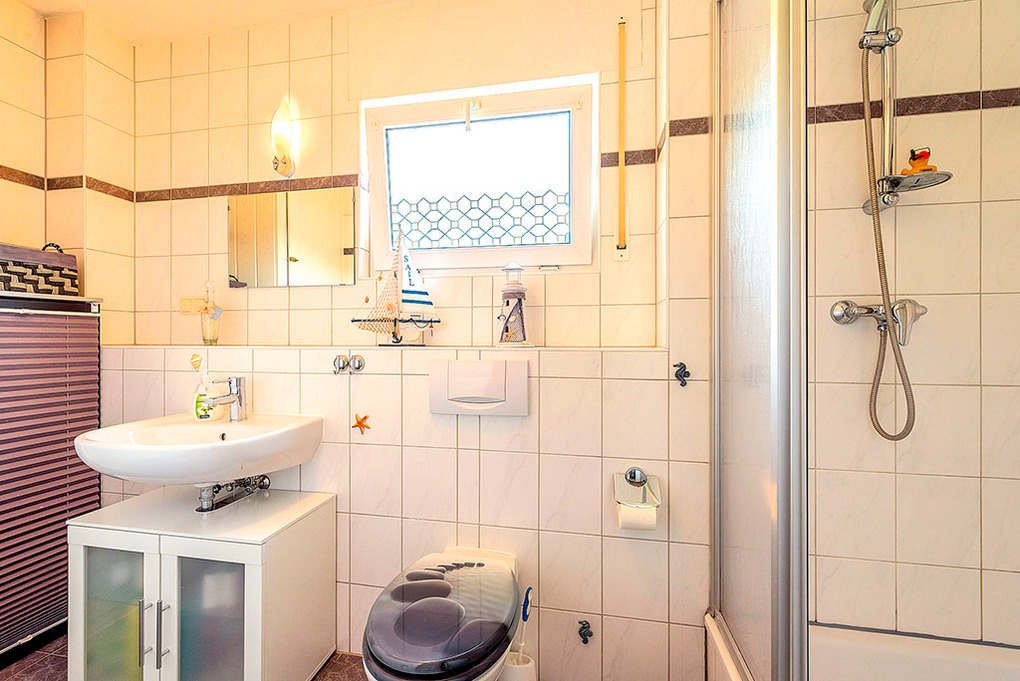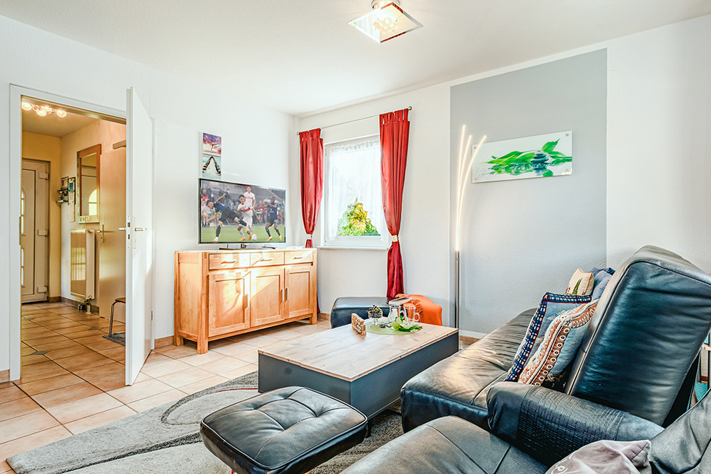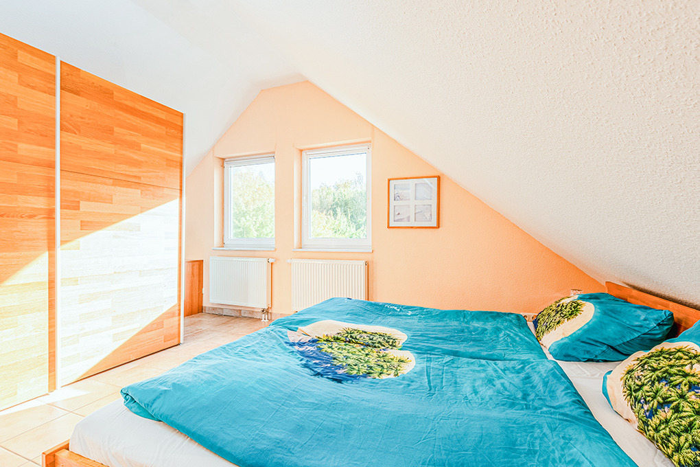 D 127.9 Ferienhaus 2-4 Pers.: Großzügiges 3-Zimmerhaus mit 86 qm Wohnfläche über 2 Etagen. Parterre: Gemütlicher Wohn-/Essraum mit Couchgarnitur, Sat-TV, Esstisch, moderner Küchenzeile (Backofen, Mikrowelle, Spülmaschine, Waschmaschine). Bad/WC. 1. Etage: Doppelzimmer. 2-Bettzimmer.