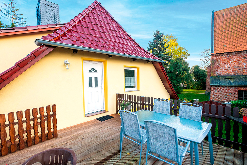 Ort: Wiek. Gute, zentrale Lage in der Ortsmitte. Einkaufen 200 m. Hafenpromenade mit Restaurants, Geschäften, Bootsverleih, Fähre zur Insel Hiddensee 300 m. Badestelle Bodden 500 m. Ostseestrand Juliusruh 7 km.