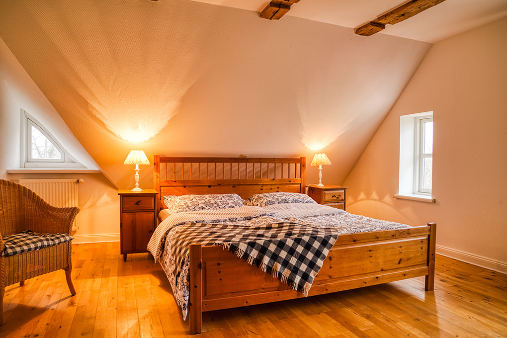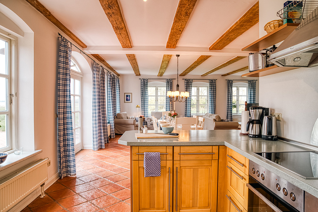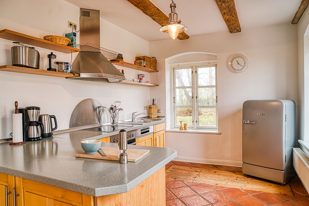 Haus: Exklusives Reetdachhaus mit herrlichem Wasserblick in idyllischer Alleinlage. 3 komfortable Ferienwohnungen mit großem Platzangebot, hochwertige, geschmackvolle Einrichtung. Alle Wohnungen haben Kaminofen, Terrasse mit Sitzmöbeln, Waschmaschine im Haus. Zentralheizung.