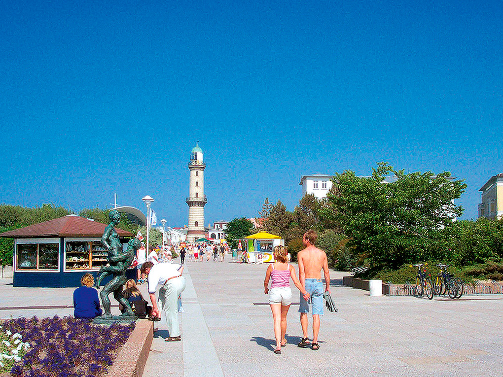 Ort: Ostseebad Warnemünde. Ruhige, zentrale Lage. Ostseestrand und Kurpromenade jeweils nur 350 m. Flaniermeile "Alter Strom" mit Yachthafen, vielen Restaurants und Cafés in maritimer Umgebung 400 m. Einkaufen 300 m. Kinderspielplatz 50 m.