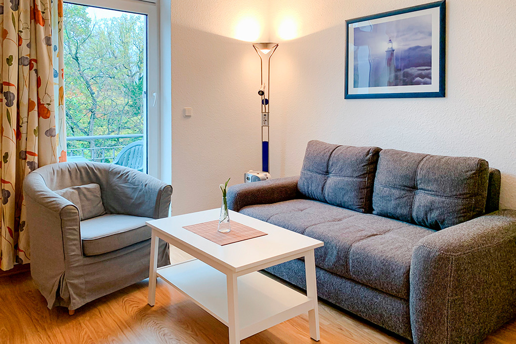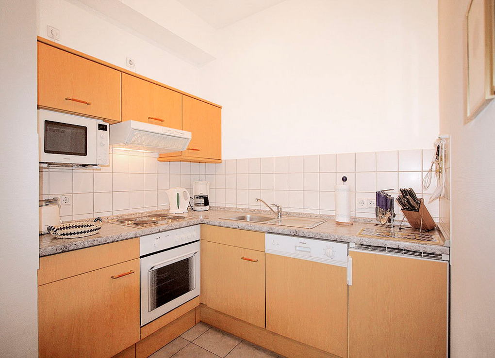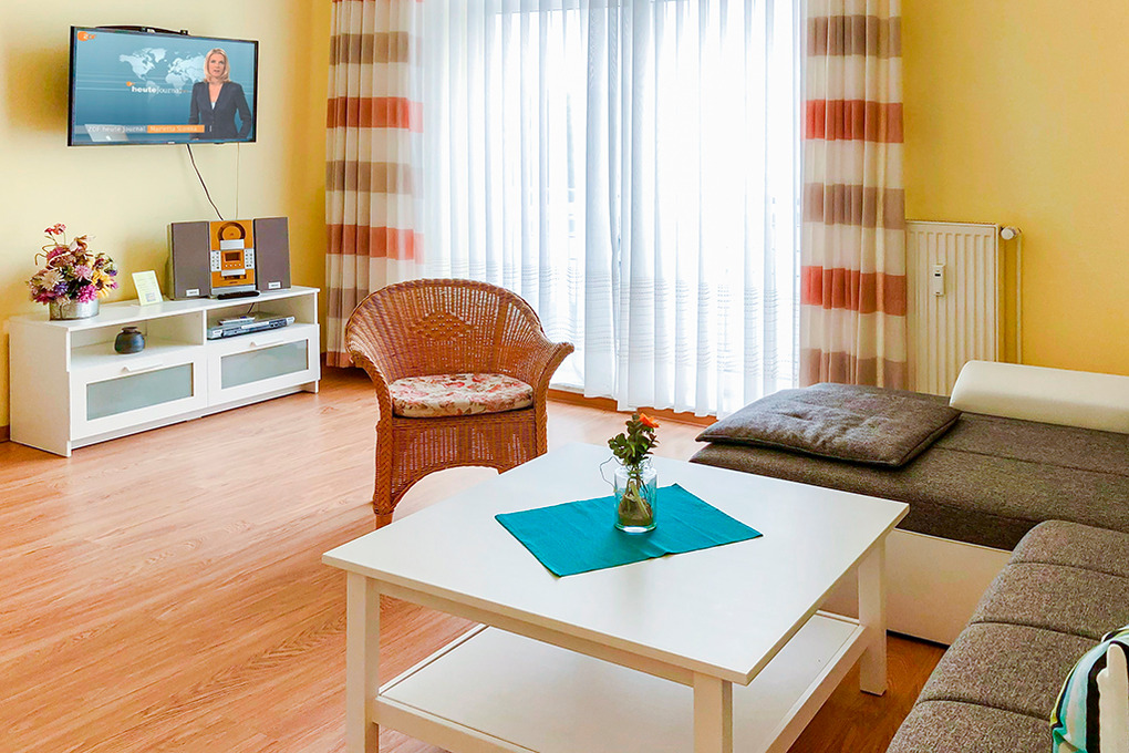 D 129.130 Wohnung 2 Pers.: 2-Zimmerwohnung, 34-42 qm Wohnfläche. Wohn-/Essraum mit Sitzgruppe, Esstisch, Küchenzeile. Doppelzimmer. Bad/WC. Teilweise Balkon.