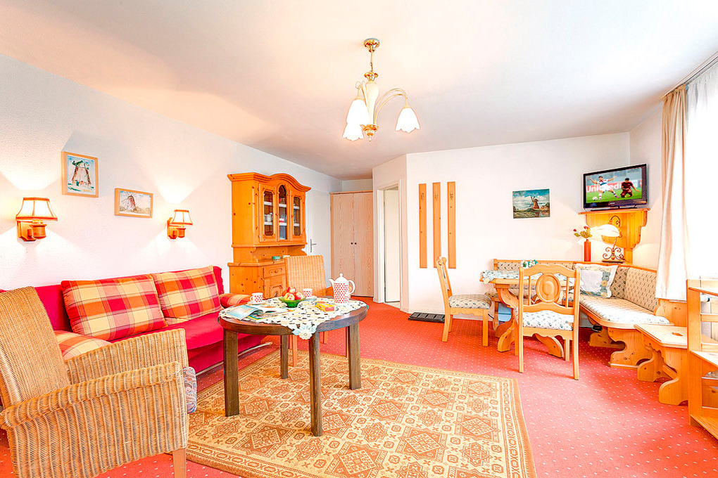 D 129.748 Wohnung 2-3 Pers.: 2-Zimmerwohnung mit 45 qm Wohnfläche, Parterre. Wohn-/Essraum mit Couchgarnitur (Ausziehcouch 1 Pers.), Flachbild-Sat-TV, Esstisch, moderner Küchenzeile (Backofen). Doppelzimmer. Bad/WC.