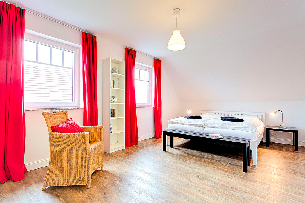 D 131.3 Ferienhaus 2-6 Pers.: Schönes 4-Zimmerhaus mit 120 qm Wohnfläche über 2 Etagen. Parterre: Heller, freundlicher Wohn-/Essraum mit Kaminofen, Couchgarnitur, Sat-TV, Esstisch, moderner Einbauküche (Backofen, Spülmaschine). Doppelzimmer. Bad mit Sauna, Dusche, Wb, WC. 1. Etage: Großes Doppelzimmer mit Sat-TV. 2-Bettzimmer. Großzügiges Bad mit Dusche, Bw, 2 Wb, WC.