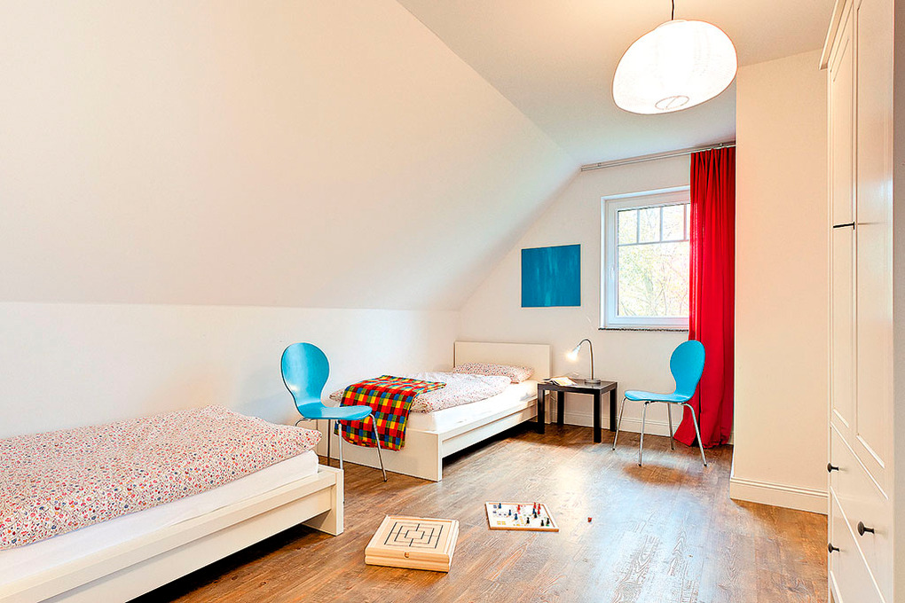 Haus: Zwei komfortable Ferienhäuser mit Sauna und Kaminofen. Moderne, geschmackvolle Einrichtung. Fußbodenheizung. Nichtraucherhäuser. Kostenloser Internetzugang über W-Lan. Großzügige Terrasse mit Sitzmöbeln. Schönes Gartengrundstück mit angrenzendem Bachlauf. Fahrradschuppen. 2 kostenfreie Pkw-Stellplätze pro Haus.