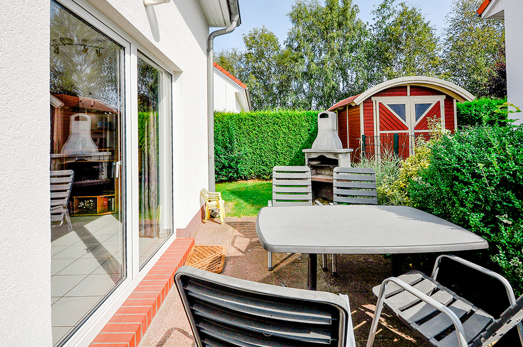 Ort: Ostseebad Rerik. Ruhige Lage in einer schönen Ferienhaussiedlung. Steilufer mit Abgang zum Ostseestrand nur 200 m. Ortsmitte 800 m. Einkaufen 600 m.