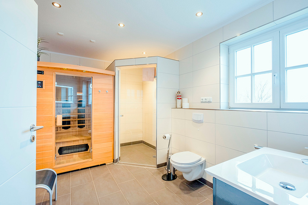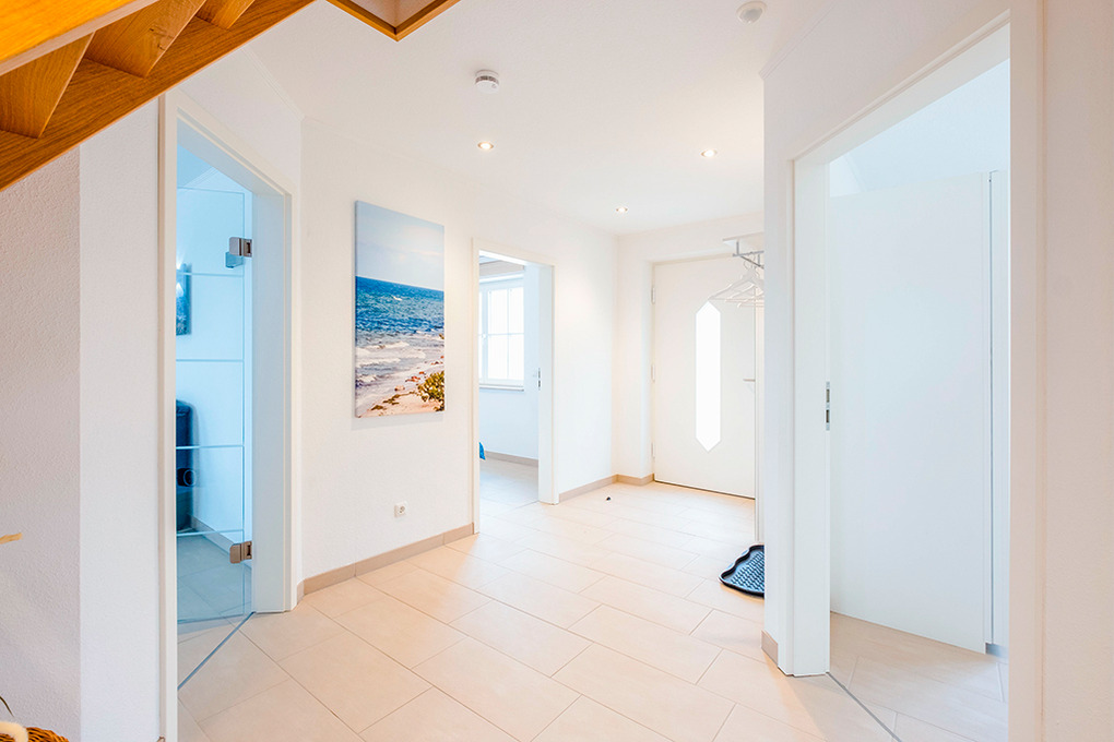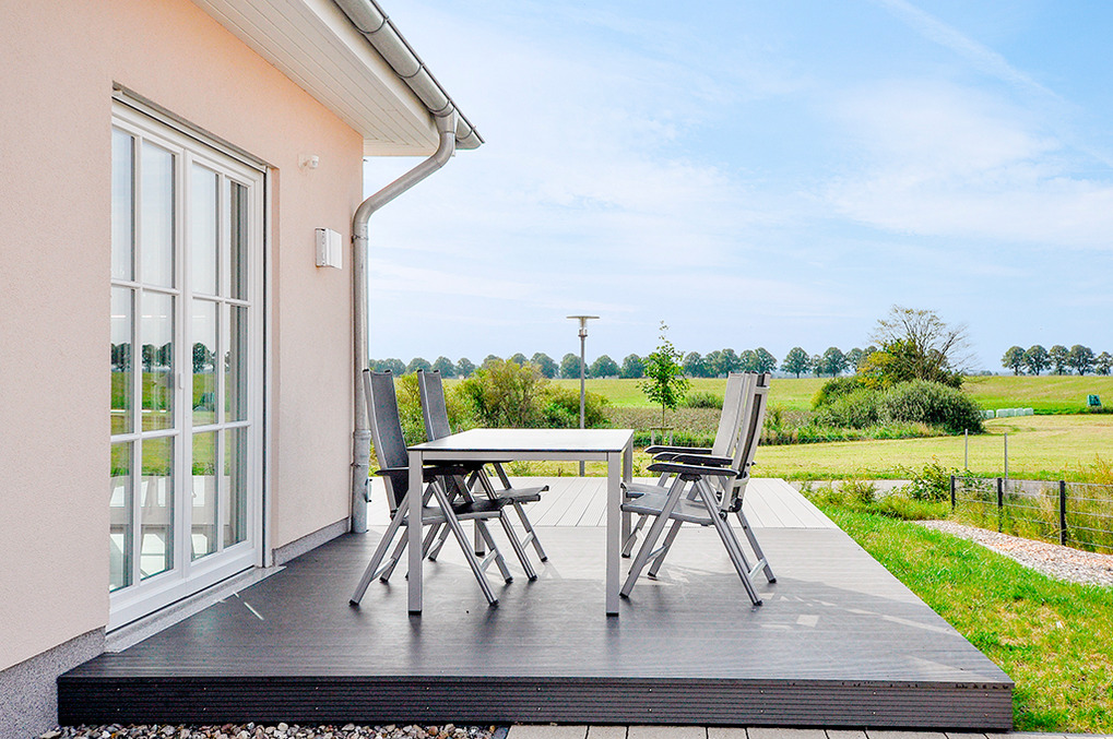 Haus: Modernes Ferienhaus mit Infrarot-Sauna. Komfortable Einrichtung, geschmackvolle Möblierung. Kostenloser Internetzugang über W-Lan. Zentral-/Fußbodenheizung. Nichtraucherhaus. Große Süd-West-Terrasse mit Sitzmöbeln, Grill, schönem Blick über die umliegenden Felder. Kleiner Garten. Abschließbares Gartenhaus für Fahrräder. Pkw-Stellplätze am Haus. Hinweis: 1 Kind bis 4 Jahren und 1 Kleinkind bis 2 Jahren für 2,50 €/Pers./Tag (Nebenkosten) zubuchbar (Bestellung), bezahlbar beim Schlüsselhalter vor Ort.