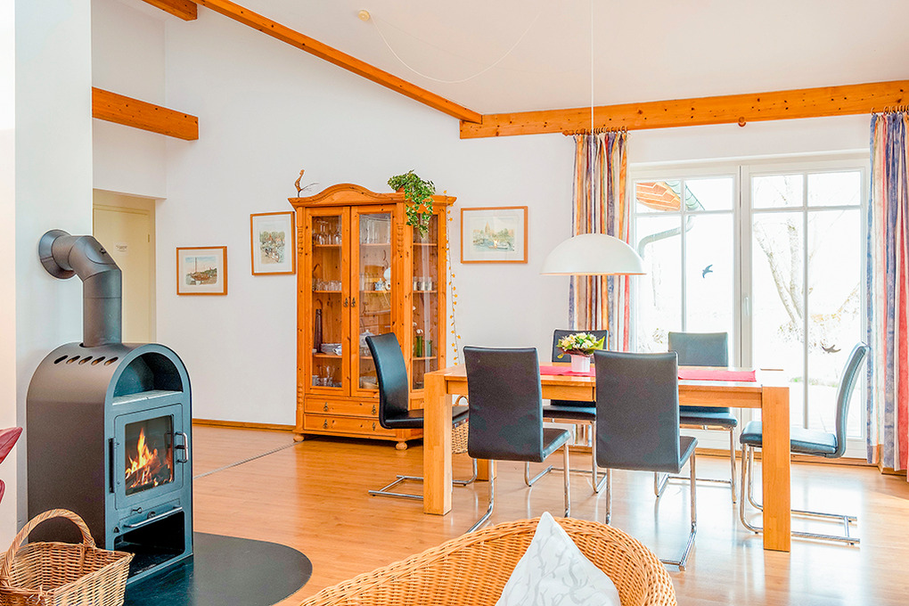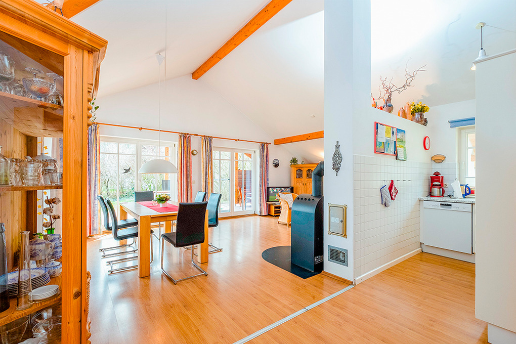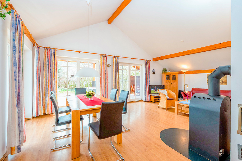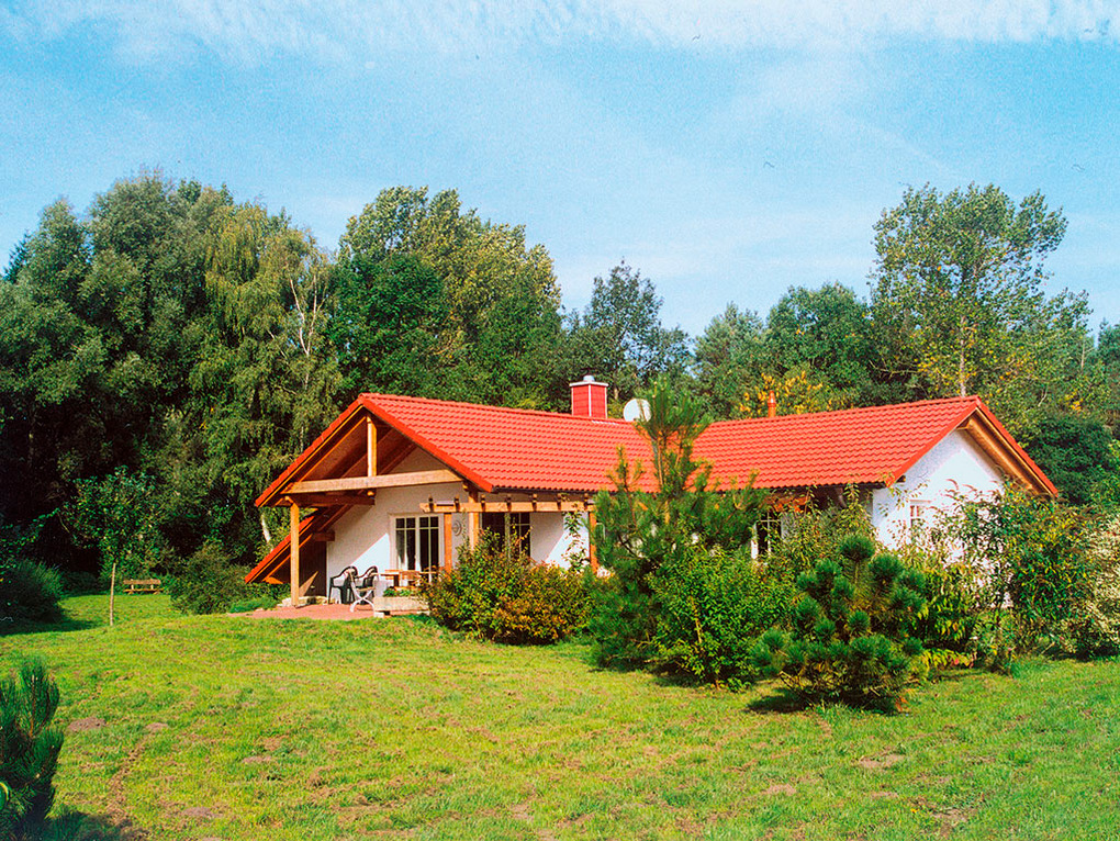 Haus: Vier schöne, auf einem 6000 qm großen Grundstück erbaute Ferienhäuser mit Kaminofen. Geschmackvolle Einrichtung und großes Platzangebot im Wohnraum. Fußbodenheizung. Waschmaschine. Kostenloser Internetzugang über Wlan. Terrasse mit Sitzmöbeln, Garten. Die Ferienhäuser verfügen über Grill- und Spielplatz und eine Tischtennisplatte (jeweils gemeinschaftliche Nutzung).