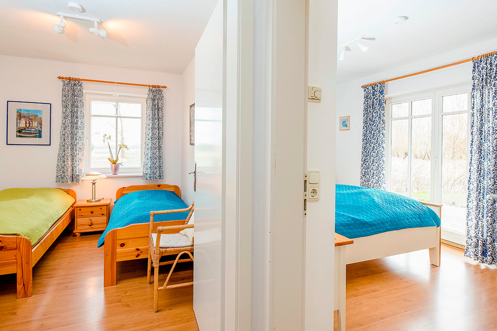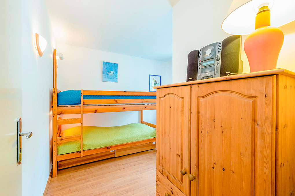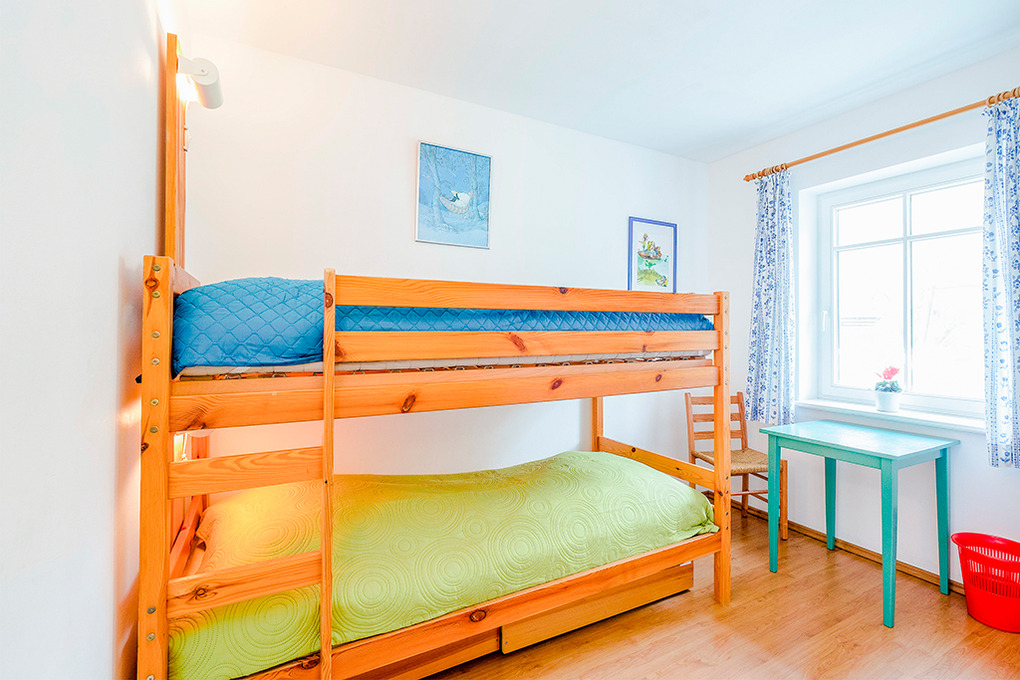 D 133.60 Ferienhäuser 3-6 Pers.: 4-Zimmerhaus mit 90 qm Wohnfläche, Parterre. Windfang mit Garderobe. Separates WC. Großzügiger Wohnraum, ausgebaut bis in den Dachgiebel, mit breiter Fensterfront, Kaminofen, gemütlicher Sitzecke, Sat-TV, Stereoanlage, Esstisch, nischenartig abgetrennter Einbauküche (Backofen, Spülmaschine). Zwei Doppelzimmer. 2-Bettzimmer mit Etagenbett. Bad/WC.
