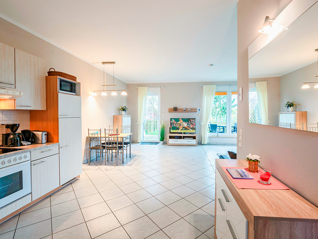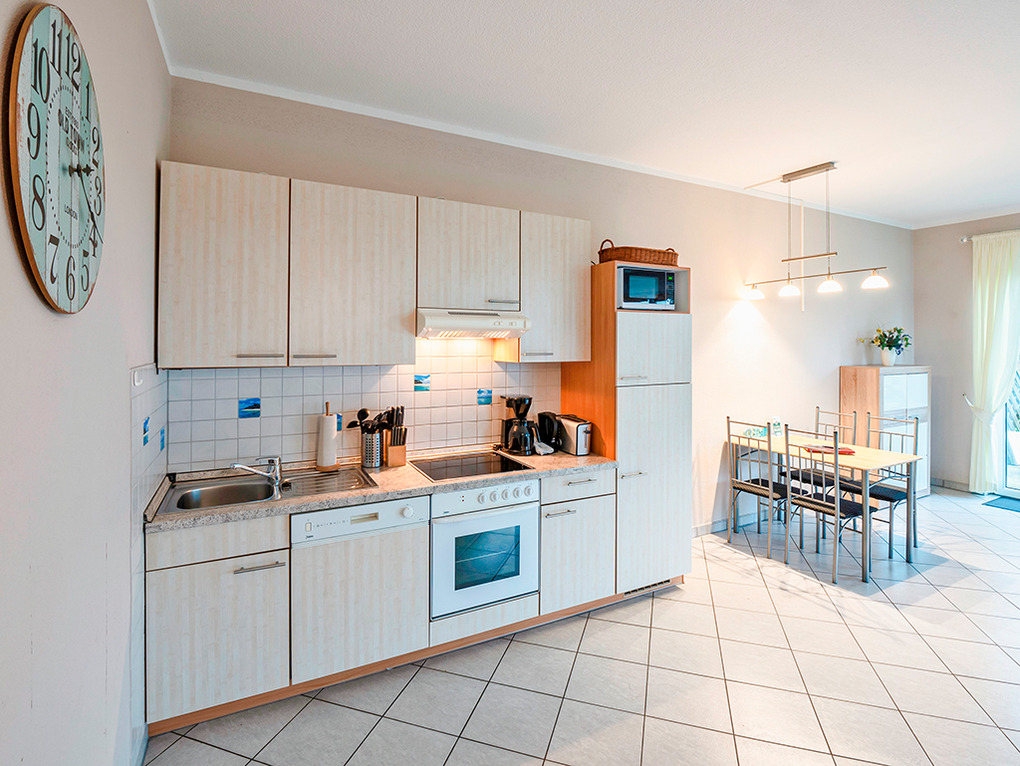 D 133.62 Wohnung 2-4 Pers.: 2-Zimmerwohnung mit 50 qm Wohnfläche, Parterre. Sehr großzügiger Wohnraum mit Sitzgarnitur (Ausziehcouch 2 Pers.), Sat-TV, Radio/CD, Esstisch, gut ausgestatteter Einbauküche (Backofen, Mikrowelle, Spülmaschine). Doppelzimmer. Bad/WC.