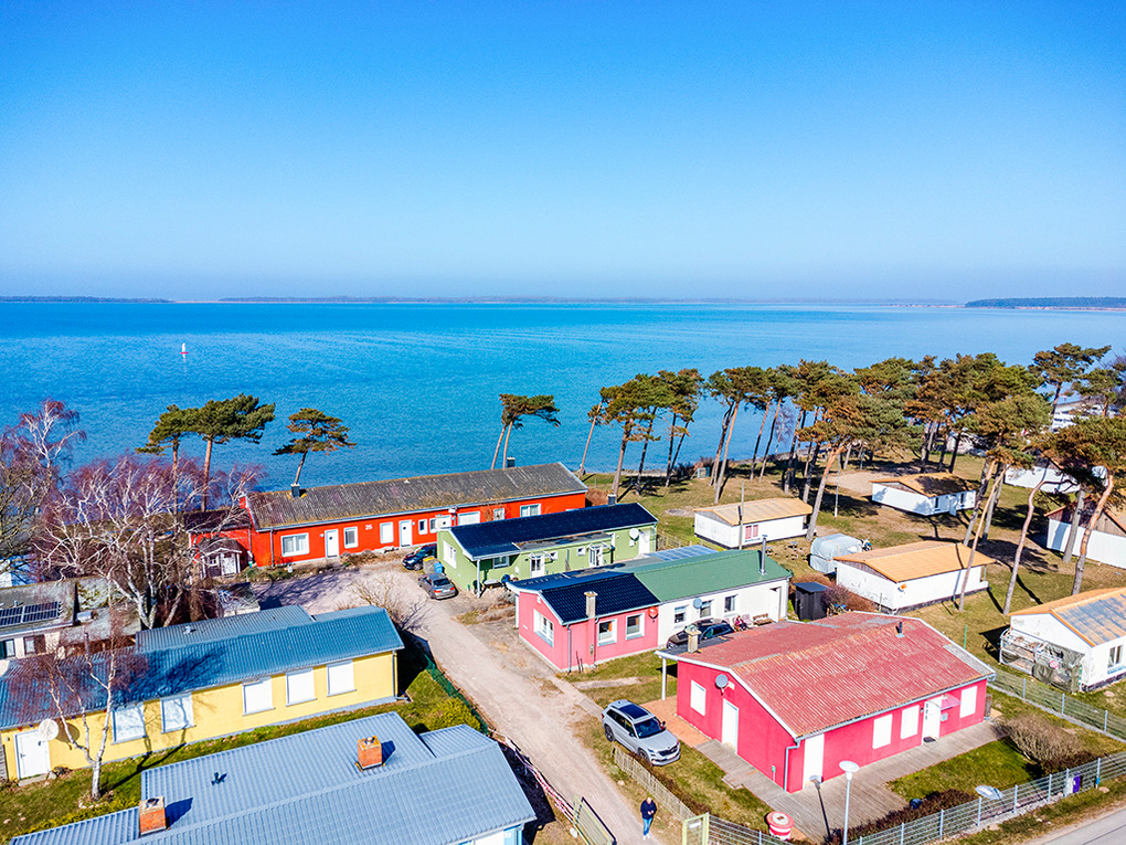 Ort: Pepelow. Ruhige Lage in einer kleinen Feriensiedlung in unmittelbarer Nähe des Salzhaffs. Naturstrand nur 80 m! Herrlicher Blick übers Haff und die umliegenden Felder. Einkaufen in Pepelow (ca. 1 km) oder Neubukow (7 km). Ostseebad Rerik ca. 10 km.