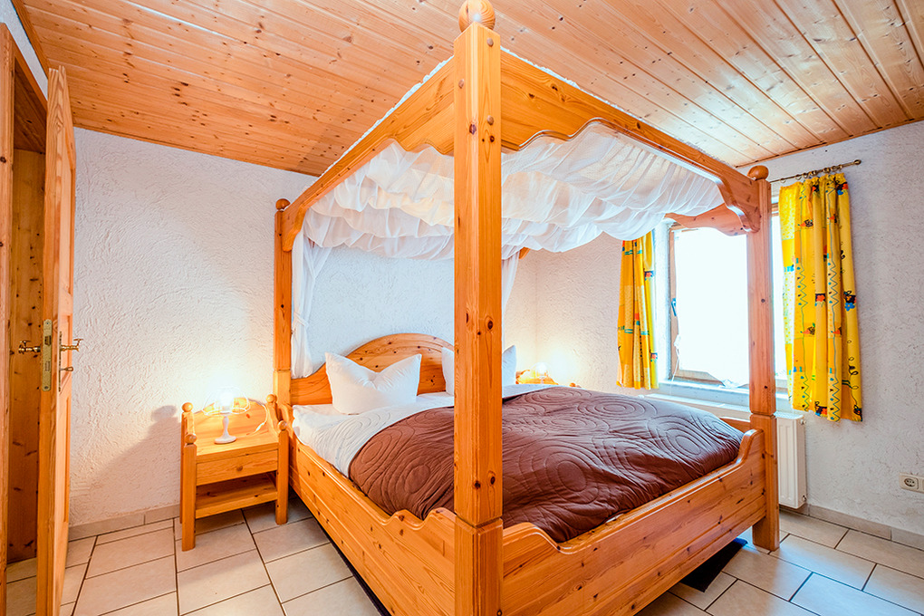 D 134.79A Wohnung 2-4 Pers.: 2-Zimmerwohnung mit 45 qm Wohnfläche, Parterre. Wohn-/Essraum mit Sitzgruppe (Schlafcouch 1-2 Pers.), Sat-TV, Radio/CD, Esstisch, Küchenzeile (Backofen, Mikrowelle). Doppelzimmer (Doppelbett mit Himmelbett). Bad/WC.