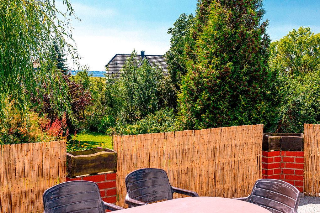 Haus: Regionstypisches, reetgedecktes Ferienhaus mit großem Platzangebot. Das Haus befindet sich auf einem großzügigen, liebevoll angelegten Gartengrundstück mit Liegewiese, Gartenteich, Schaukel, Sandkasten (4000 qm, gemeinschaftliche Nutzung). Ideal für befreundete Familien oder Freundeskreise. Freundliche, gepflegte Einrichtung. Gemütliches Ambiente durch Holzvertäfelungen. Zentralheizung. Kostenloser Internetzugang über W-Lan. Schöne Terrasse mit Sitzmöbeln, separate Grillecke mit weiteren Sitzgelegenheiten. Sonnige Dachterrasse mit Sitzmöbeln, Sonnenliegen, herrlichem Wasserblick. Nichtraucherhäuser. 2 Pkw-Stellplätze.