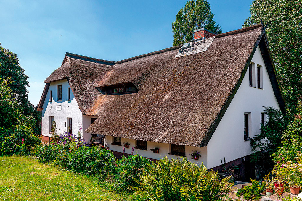 Haus: Schönes Reetdachhaus mit drei gemütlichen Wohnungen. Freundliche Einrichtung. Zentralheizung. Kostenloser Internetzugang über W-Lan. Jede Wohnung mit schöner Sitzecke im Garten. Zusätzlich auf dem großzügigen, liebevoll angelegten Gartengrundstück: Liegewiese, Gartenteich, Schaukel, Sandkasten (4000 qm, gemeinschaftliche Nutzung). Nichtraucherhäuser. 1 Pkw-Stellplatz pro Wohnung.