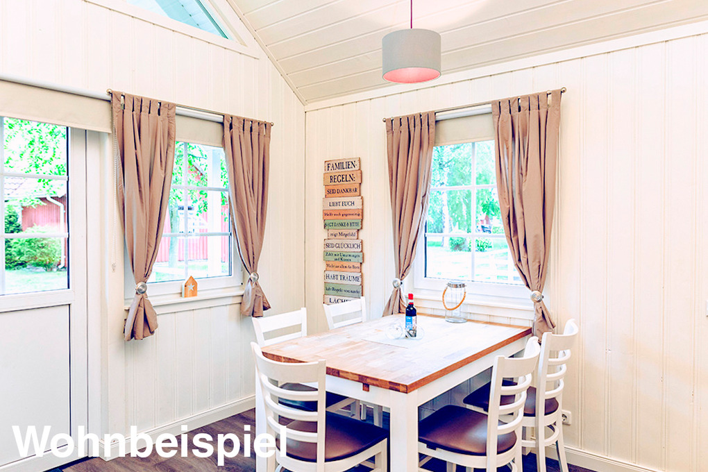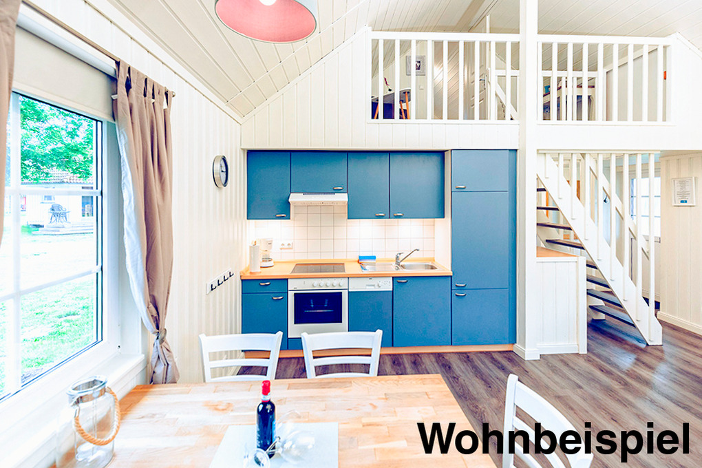 D 138.9 Ferienhaus 2-4 Pers.: 3-Zimmer-Haus, 39 qm Wohnfläche. Bis in den Dachgiebel ausgebauter Wohn-/Essraum mit Sitzgruppe, Esstisch, Küchenzeile (Backofen). Doppelzimmer. Bad/WC. 2-Bettzimmer mit Etagenbett.