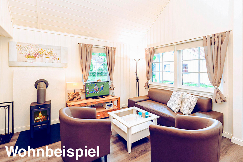 Haus: Schöne Ferienhäuser im skandinavischen Stil. Ansprechende Einrichtung, gemütliche Atmosphäre durch Holzvertäfelung im ganzen Haus. Alle Ferienhäuser verfügen über TV, Radio/CD, einige über Kaminofen. E-Heizung. Warmwasser über E-Boiler. Internetzugang über W-Lan gegen Gebühr (vor Ort per Paypal oder Kredtikarte zahlbar). Teilweise überdachte Terrasse mit Gartenmöbeln. 1 Pkw-Stellplatz am Haus.