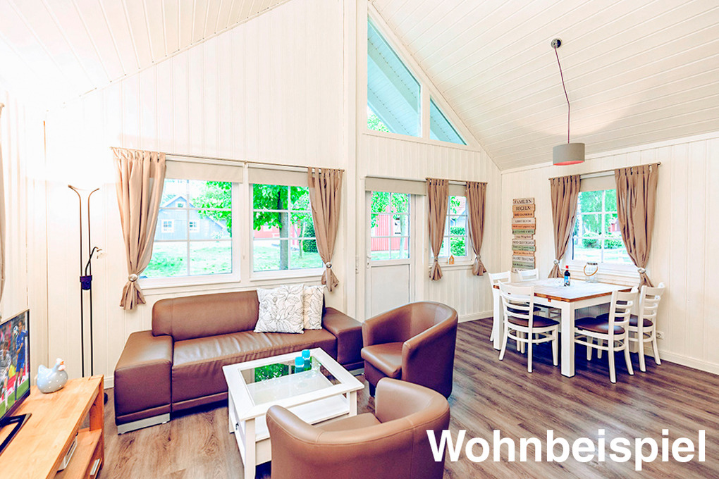 Haus: Schöne Ferienhäuser im skandinavischen Stil. Ansprechende Einrichtung, gemütliche Atmosphäre durch Holzvertäfelung im ganzen Haus. Alle Ferienhäuser verfügen über TV, Radio/CD, einige über Kaminofen. E-Heizung. Warmwasser über E-Boiler. Internetzugang über W-Lan gegen Gebühr (vor Ort per Paypal oder Kredtikarte zahlbar). Teilweise überdachte Terrasse mit Gartenmöbeln. 1 Pkw-Stellplatz am Haus.