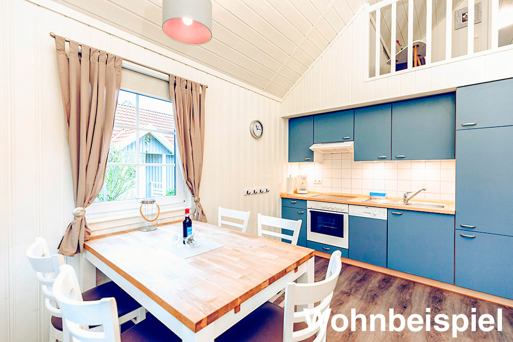 D 138.9 Ferienhaus 2-4 Pers.: 3-Zimmer-Haus, 39 qm Wohnfläche. Bis in den Dachgiebel ausgebauter Wohn-/Essraum mit Sitzgruppe, Esstisch, Küchenzeile (Backofen). Doppelzimmer. Bad/WC. 2-Bettzimmer mit Etagenbett.