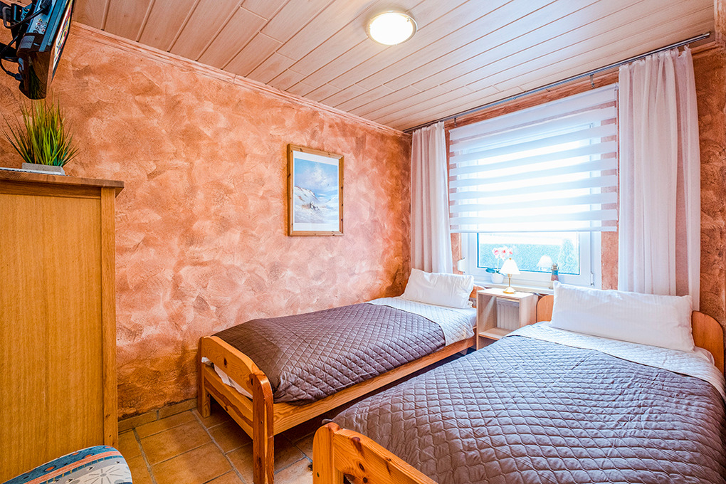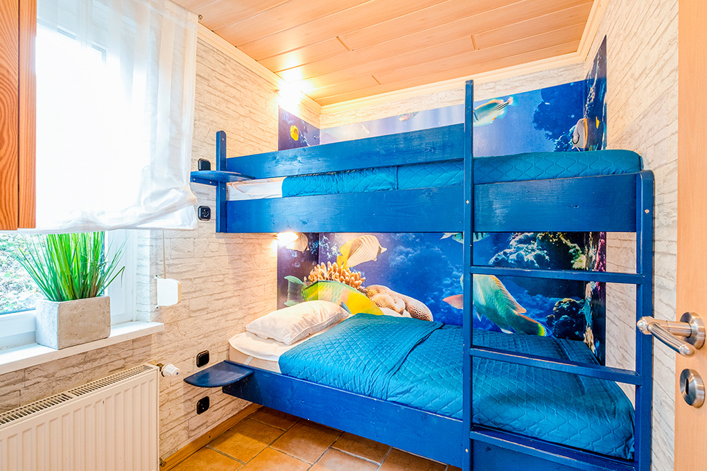 D 138.82 Ferienhaus 2-4 Pers.: 3-Zimmer-Reihenbungalow mit 50 qm Wohnfläche. Schöner Wohnraum mit Sitzgruppe, Couchtisch, Sat-TV, Stereoanlage, Esstisch, Einbauküche (Backofen, Mikrowelle, Spülmaschine, Gefrierschrank). 2 Bettzimmer mit Sat-TV. 2-Bettzimmer mit Etagenbett. Bad/WC. Flur mit Waschmaschine, Trockner.
