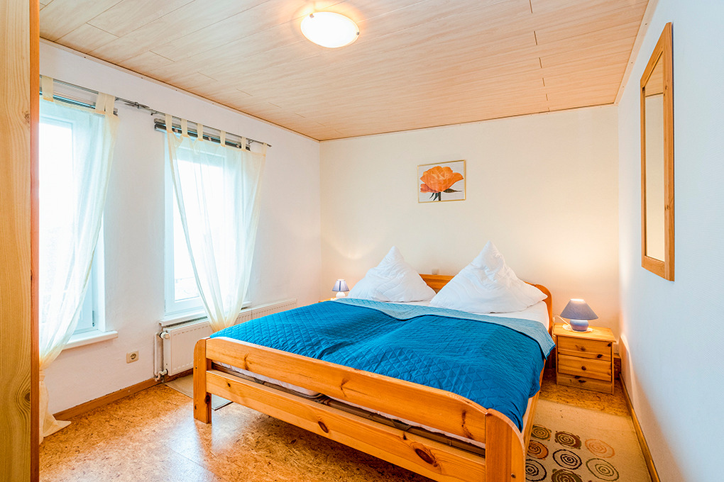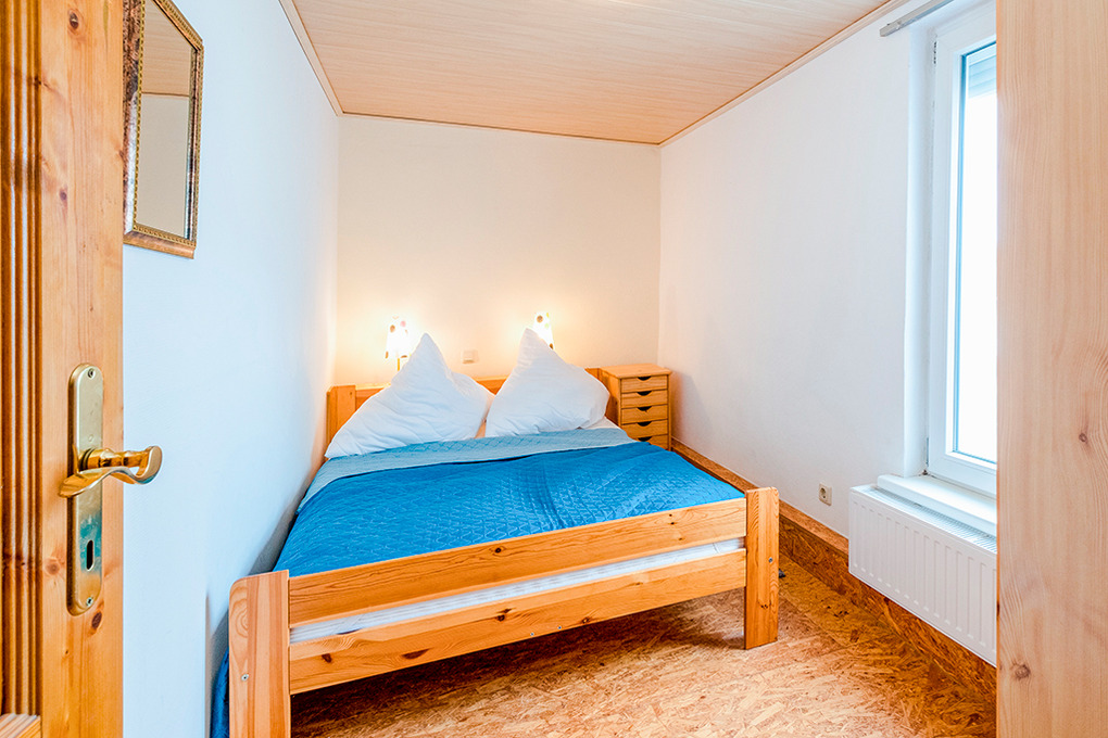 D 138.85 Ferienhaus 2-4 Pers.: 3-Zimmer-Bungalowhälfte mit 55 qm Wohnfläche. Schöner Wohnraum mit Sitzgruppe, Sat-TV, Radio/CD, Esstisch, Einbauküche (Backofen, Mikrowelle, Spülmaschine). Zwei Doppelzimmer, davon eines mit franz. Bett. Bad/WC. Terrasse mit Sitzmöbeln, Grill.