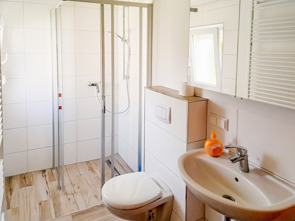 Haus: Schöner Bungalow mit moderner, freundlicher Einrichtung. Ansprechendes Ambiente durch Holzvertäfelungen und Holzböden. Zentralheizung. Warmwasser über E-Boiler (250 l). Terrasse mit Sitzmöbeln, Grill. 1 Pkw-Stellplatz.