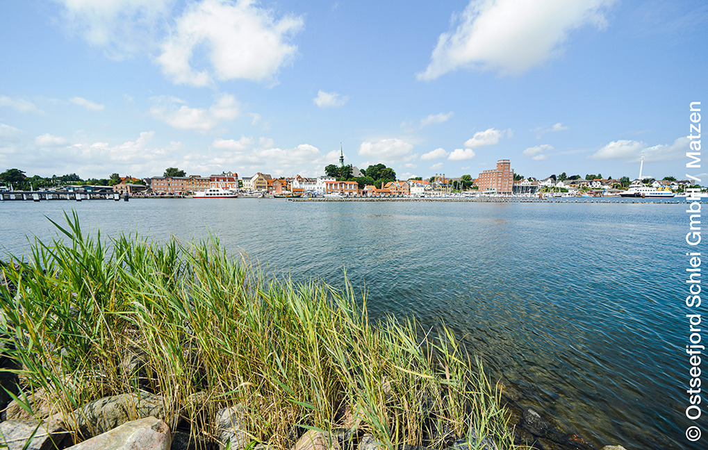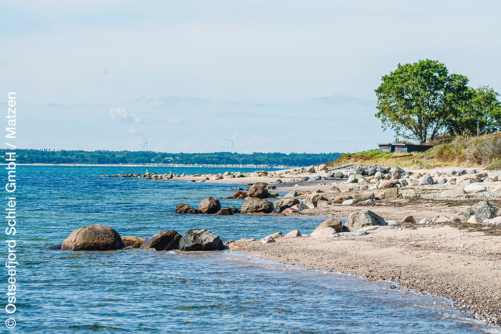 Ort: Olpenitz bei Kappeln. Hervorragende Lage auf einer schmalen Landzunge zwischen Schleimündung und der Marina Olpenitz. Hübsche Sandbucht mit Badestrand 200 m. Neu gestaltete Hafenpromenade mit Einkaufsmöglichkeit, Imbiss 1,9 km. Ostseestrand 3,5 km. Kappeln mit Geschäften, Restaurants, hübschem Hafen 7 km.