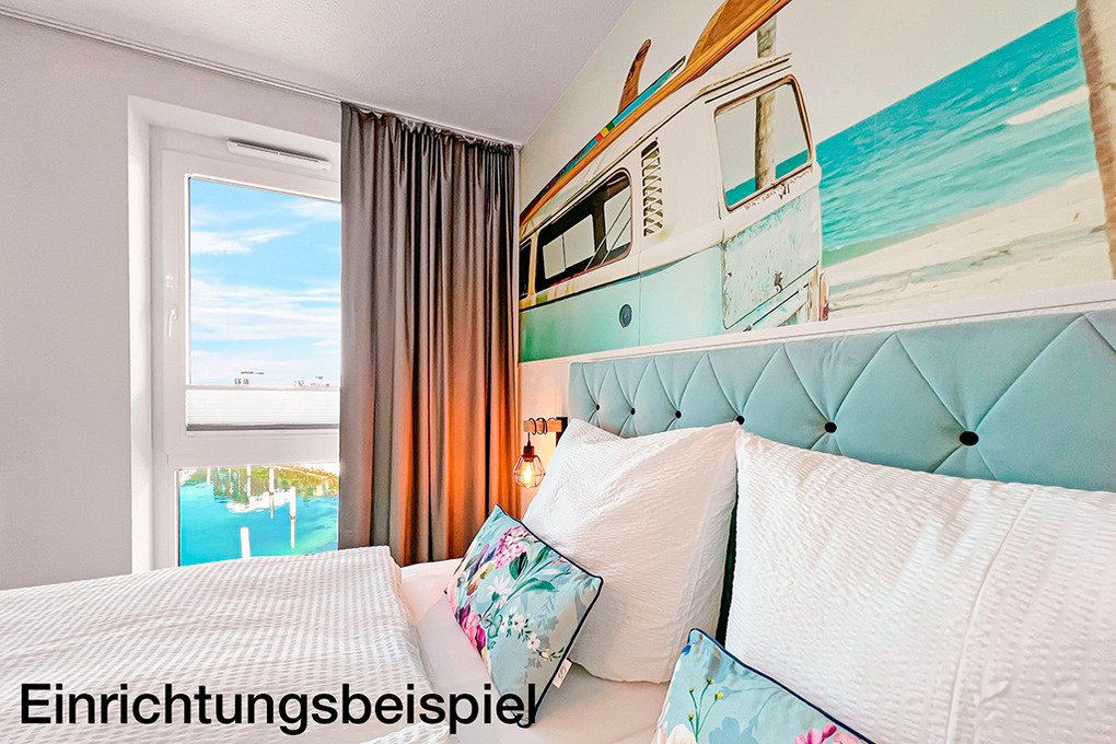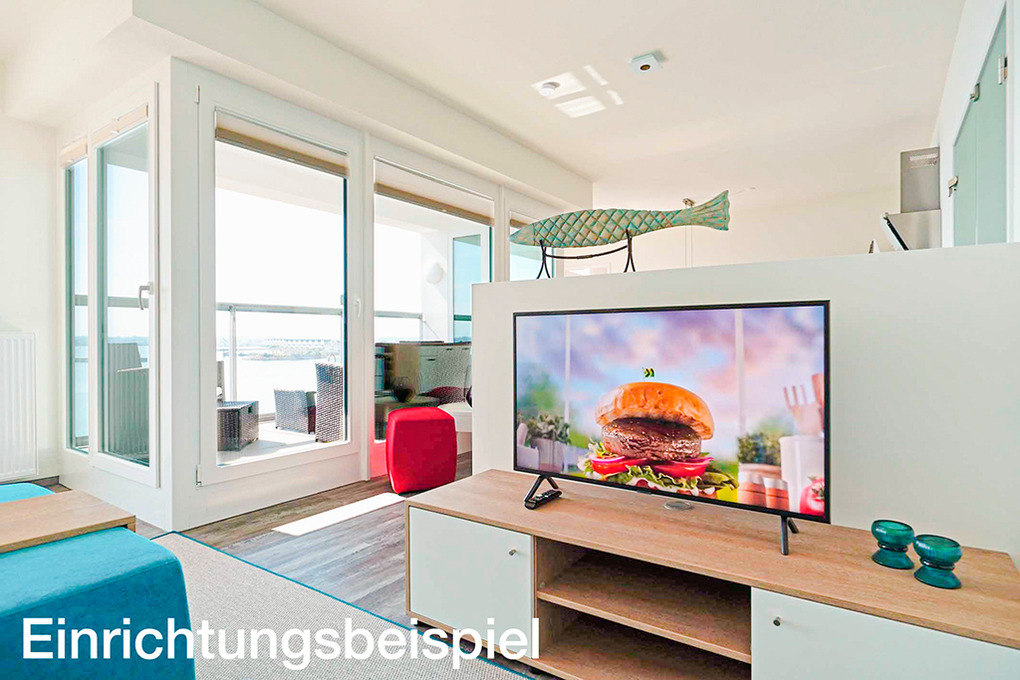 D 186.56 Wohnung 4-6 Pers.: 3-Zimmerwohnung, 84-114 qm Wohnfläche. Wohn-/Essraum mit Sitzgruppe (Ausziehcouch 2 Pers.), Sat-TV, Esstisch, Küchenzeile (Backofen, Spülmaschine). Doppelzimmer. Weiteres Doppelzimmer oder 2-Bettzimmer. Bad/WC. Balkon oder Terrasse mit Panorama-Wasserblick.