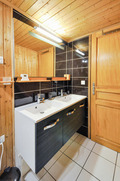 1. Etage: Kleiner Schlaf-/Spieleraum unterm Dach mit Schlafsofa (1 Pers.), Sat-TV, Playstation, Video. 1-Bettzimmer. Doppelzimmer. 3-Bettzimmer mit Doppelbett, Einzelbett, Balkon. Bad: Du, Wb, WC.