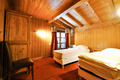 Dachgeschoss mit holzvertäfelten Schrägen: Doppelzimmer. Bad: Du, Wb, WC. 3-Bettzimmer mit Bad (Du, Wb).