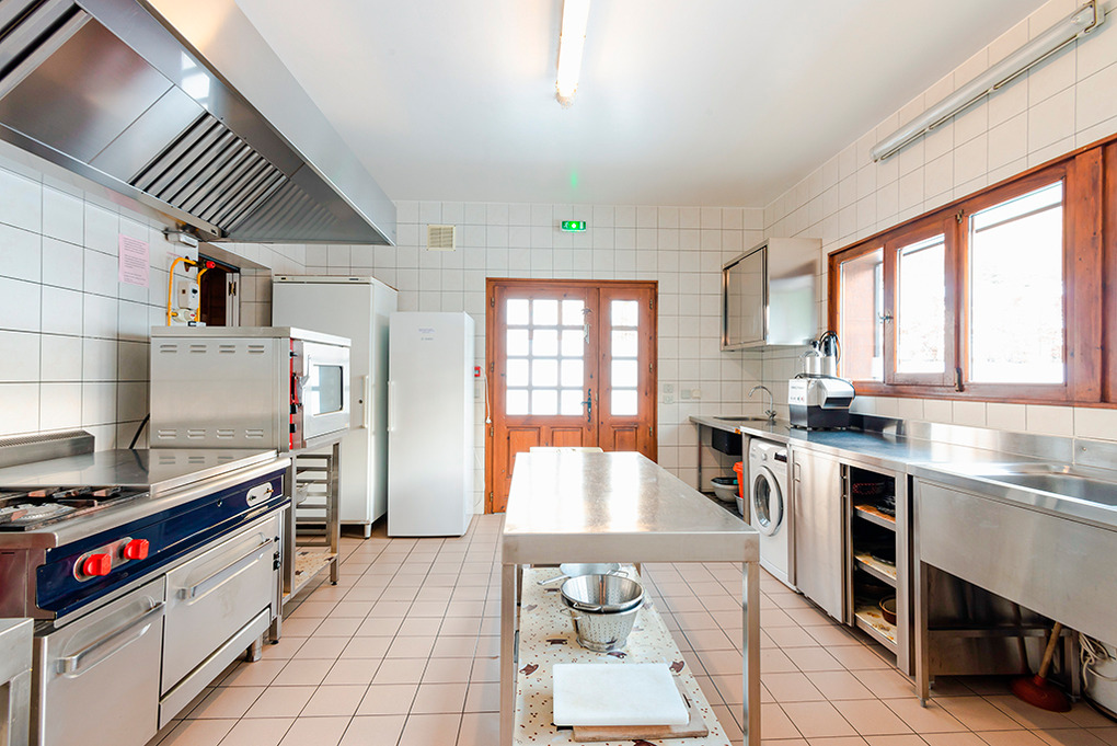 1. Etage (Hanglage): Eingang. Großer Wohnraum (60 qm) mit gemütlicher Sofa-Sitzecke, TV, Radio/CD, Esstischen. Gruppenküche mit großem Backofen, Mikrowelle, Gefrierschrank, professioneller Spülmaschine. Vorratsraum. Doppelzimmer, behindertenfreundlich gestaltet mit franz. Bett, Sitzecke, TV, Bad.