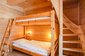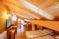 F 16.7 Chalet 6-14 Pers.: 6-Zimmer-Chalethälfte mit 150 qm Wohnfläche über 2 Etagen. Parterre: Heller Wohn-/Essraum (35 qm) mit gemütlicher Sitzecke, Sat-TV, DVD, Radio/CD, moderner Einbauküche (Backofen, Mikrowelle, Spülmaschine), Balkon. Doppelzimmer. Bad: Du, Wb. Separates WC. 1. Etage: Doppelzimmer. Doppelzimmer mit franz. Bett. Doppelzimmer mit franz. Bett, Balkon. 6-Bettzimmer mit 2 Etagenbetten, Balkon, Treppe auf urige Galerie unterm Dach (2 Einzelmatratzen). Bad: Du, Wb, WC. Weiteres Bad: Bw, Du, Wb. Separates WC. Hinweis: Kleine Sauna im Tiefparterre. Nutzung nur für Gäste dieser Haushälfte oder des ganzen Hauses F 16.8.
