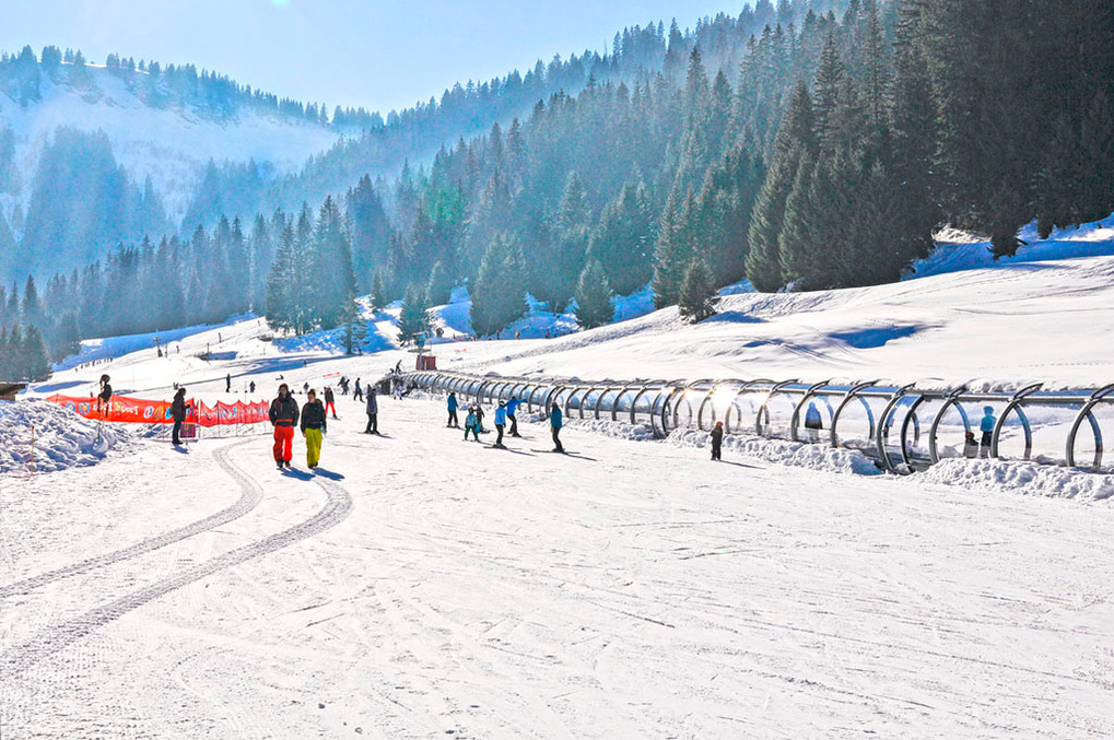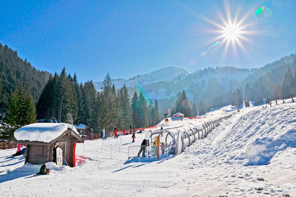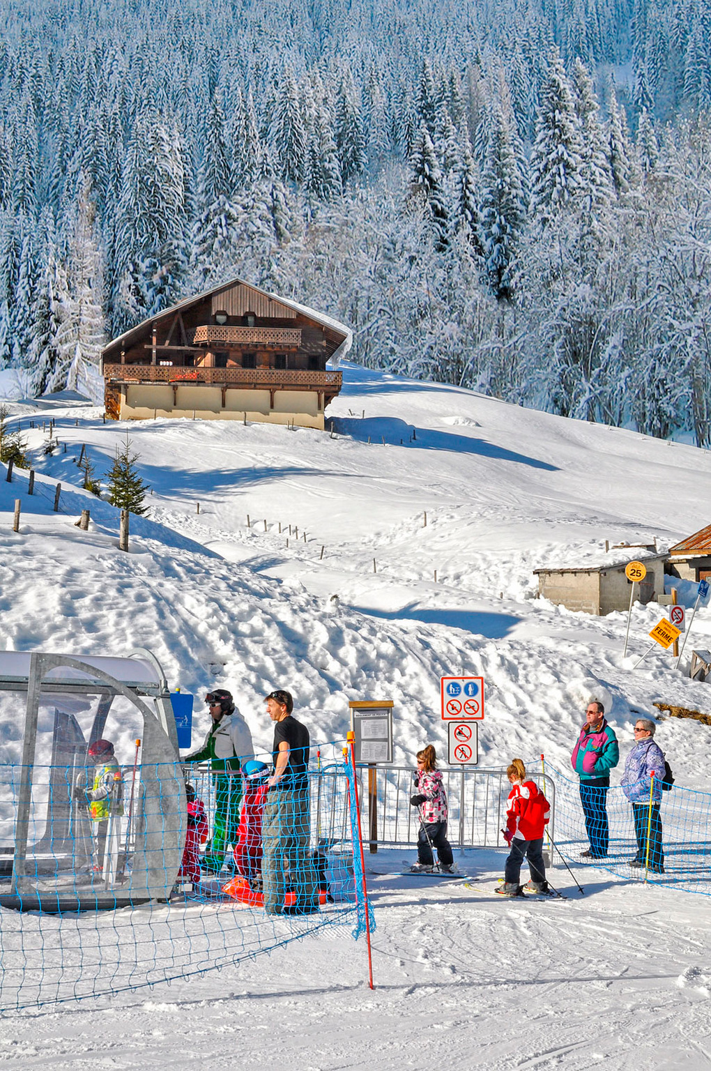Ort: Châtel, Ortsteil Pré-la-Joux. Top Lage in unmittelbarer Nähe der beschneiten Talabfahrt. Skiabfahrt ab und bis in Hausnähe. Sessellifte 200 bzw. 350 m. Übungshang, Anfängerlifte 100 m. , Rodelbahn 300 m. Restaurant mit Baguette-Service 300 m. Ortsmitte Châtel 4 km. Pkw-Zufahrt bis auf 80 m (danach Fußweg zum Chalet.
