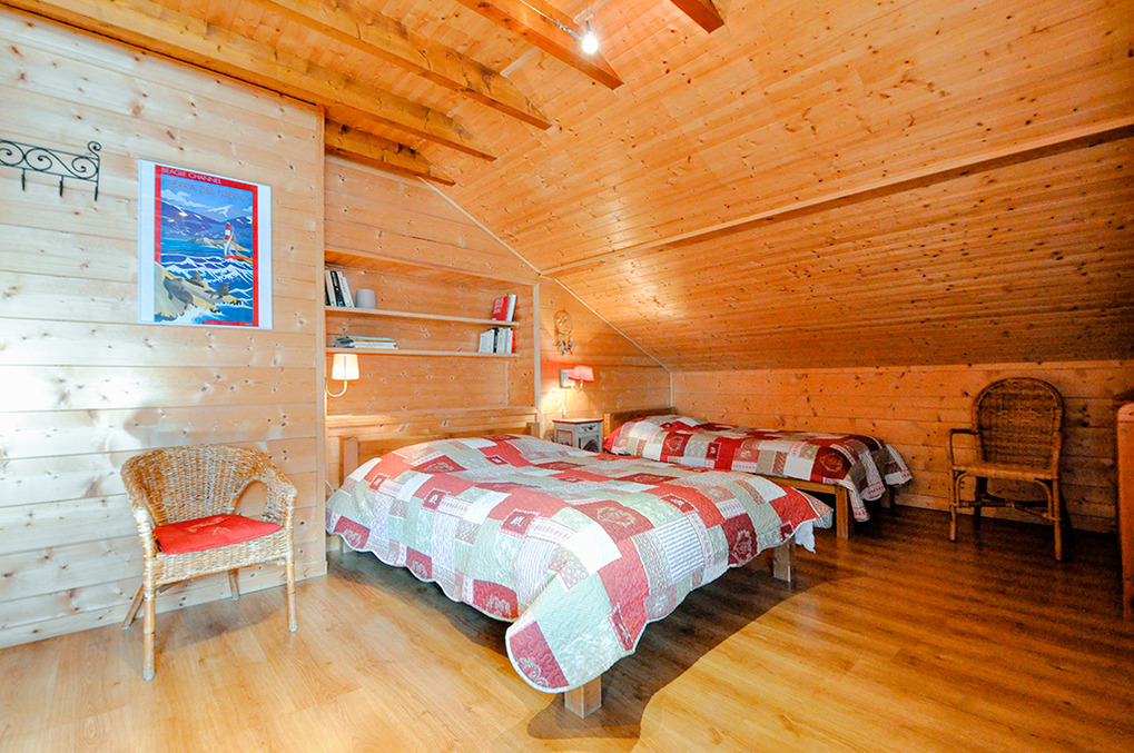 1. Etage: Doppelzimmer. Zwei 3-Bettzimmer mit franz. Bett, Einzelbett. Galerie, offen zum Wohnraum mit Einzelbett in gemütlicher Schlafnische. Bad: Du, Wb. Separates WC.