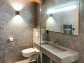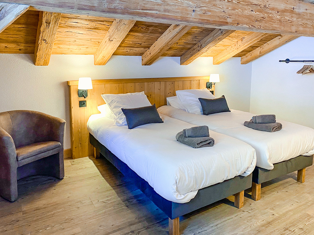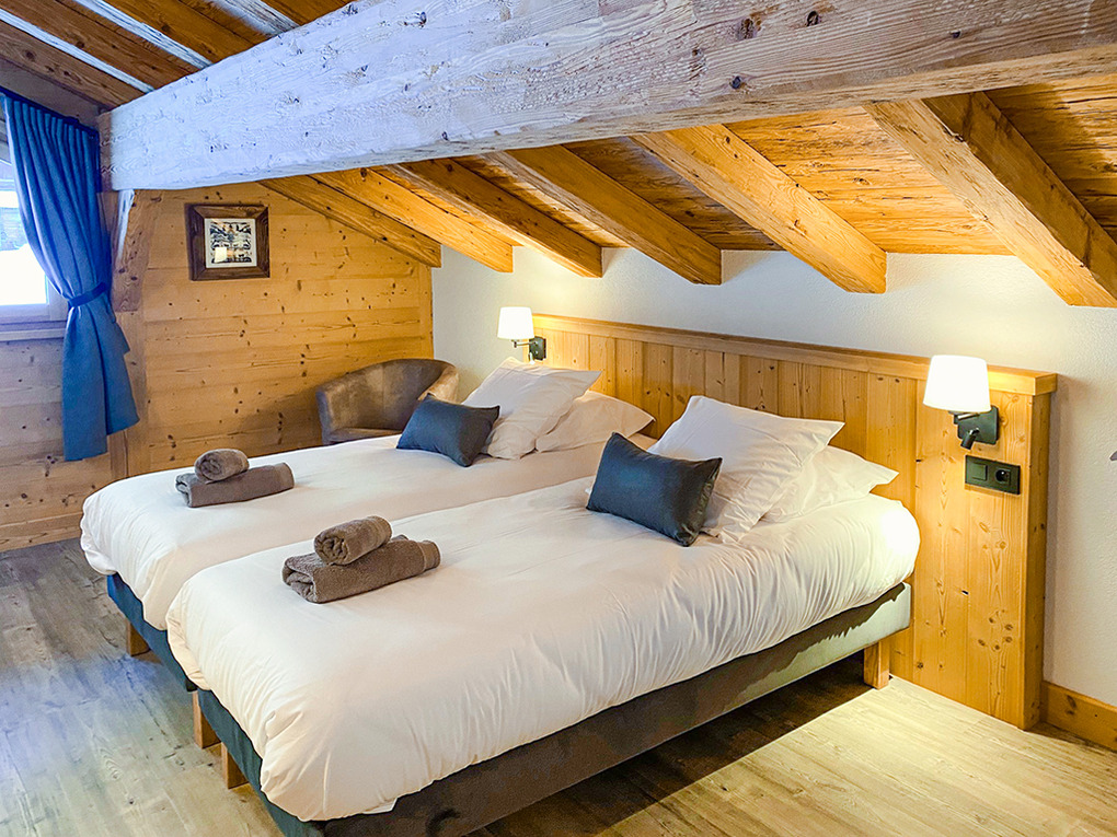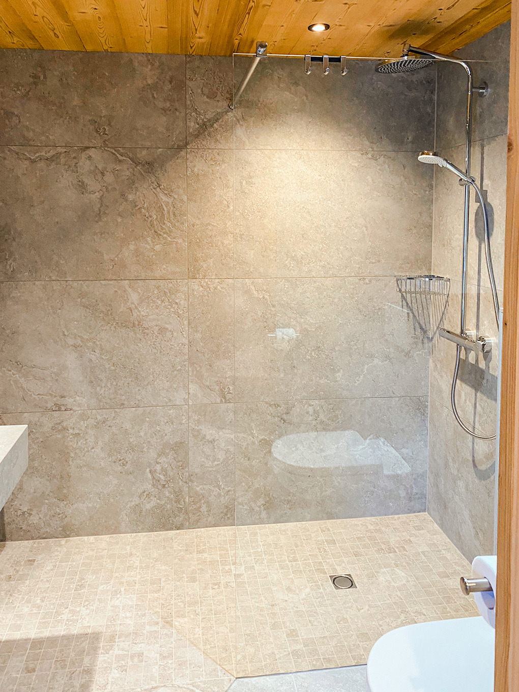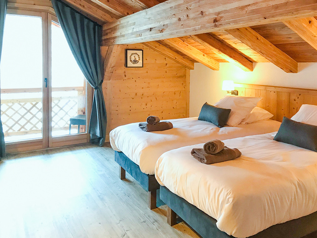 Parterre: Skiraum mit Schuhtrocknern. Zwei Doppelzimmer mit Bad (Du, Wb, WC). 3-Bettzimmer mit 3 Einzelbetten, Bad (Du, Wb, WC). Kleiner Wellnessbereich mit Sauna, Dusche, WC. Zugang zum Whirlpool.