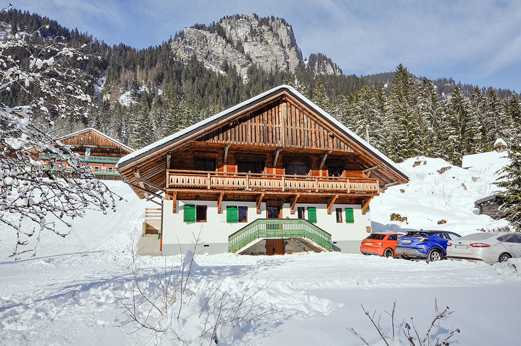 Ort: Châtel. Gute Lage zwischen den Ortsteilen Linga (800 m) und Pré la Joux (1,2 km) mit Gondel und Sesselliften. Je nach Schneelage Skiabfahrt bis in Hausnähe über einen Ziehweg. Ortsmitte, Gondel Richtung Morgins 3,8 km. Skibus 20 m.