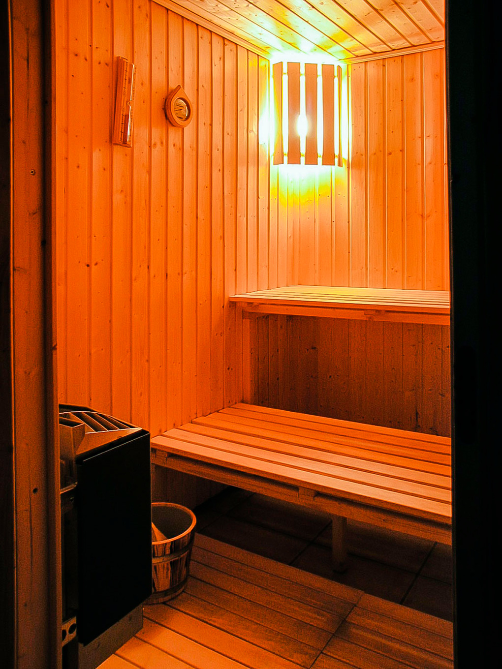 Parterre: Aufenthaltsraum (ca. 35 qm) mit kleinem Wintergarten (Liegestühle), Sitzecke, Sat-TV, DVD, Billard-Tisch, Küchenzeile. Doppelzimmer mit Bad (Du, Wb, WC). Doppelzimmer mit franz. Bett, Bad (Du, Wb, WC). Saunaraum mit Sauna, Regendusche, Wb. Separates WC.