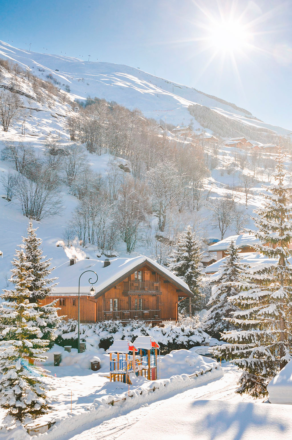 Ort: Le Bettaix. Hervorragende Lage unterhalb von Les Menuires: Skiabfahrt bis in Hausnähe, Sessellift ins Skigebiet nur 250 m. Ruhige Lage im hübschen Bergdorf mit Blick auf die umliegende Bergwelt. Les Menuires mit Geschäften 3 km. Baguette-Lieferservice zum Chalet.