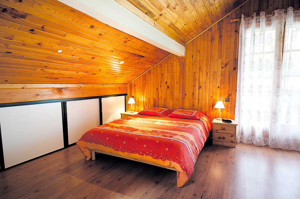 2. Etage (leichte Dachschrägen): Doppelzimmer mit franz. Bett, Du, Wb. Galerie mit 1 Einzelbett. Dahinter schönes, durch Vorhang abgetrenntes Zimmer mit 3 Einzelbetten und Balkon. Bad: Bw, Wb, WC.