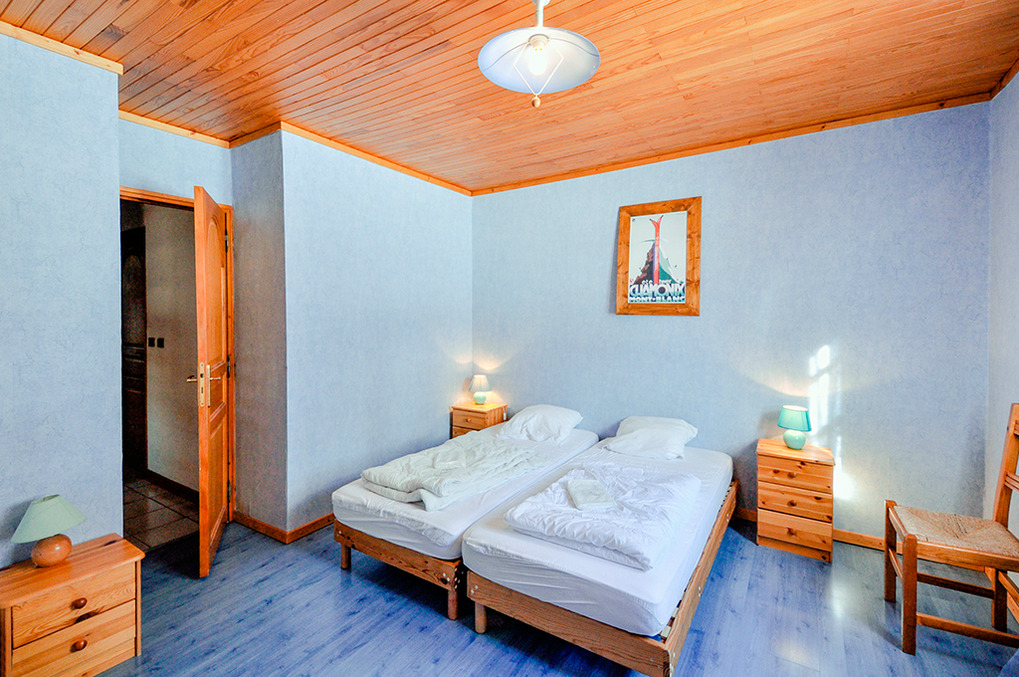 1. Etage: Wohn-/Essraum (25 qm) mit Kamin, Sitzgruppe, Radio/CD, gr. Esstisch. Moderne Einbauküche (Backofen, Mikrowelle, Gefrierschrank, Spülmaschine). Doppelzimmer mit franz. Bett, Balkon. 3-Bettzimmer mit 3 Einzelbetten. Bad: Bw, Wb. Separates WC.