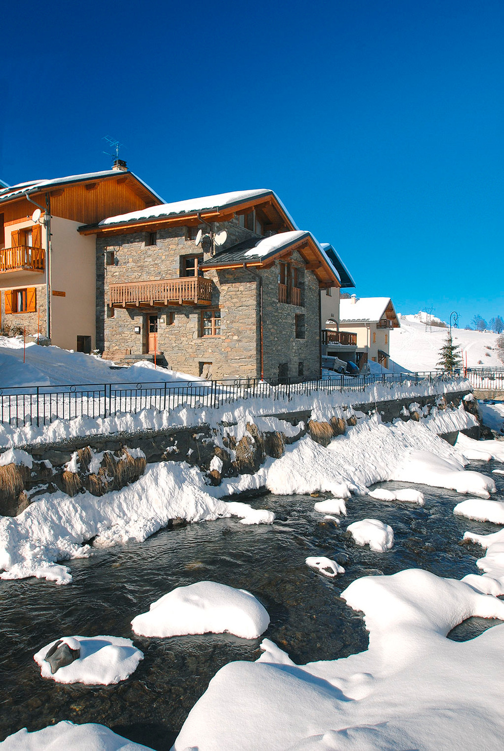Ort: Bergdorf Le Bettaix. Top-Lage: Ski-Talabfahrt bis zum Dorf über beschneite Piste. Sessellift ins Skigebiet 250 m. Les Menuires mit Geschäften 3 km. Baguette-Lieferservice zum Chalet.