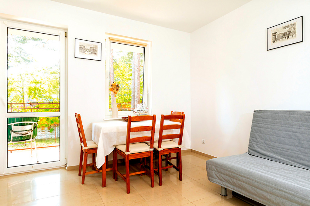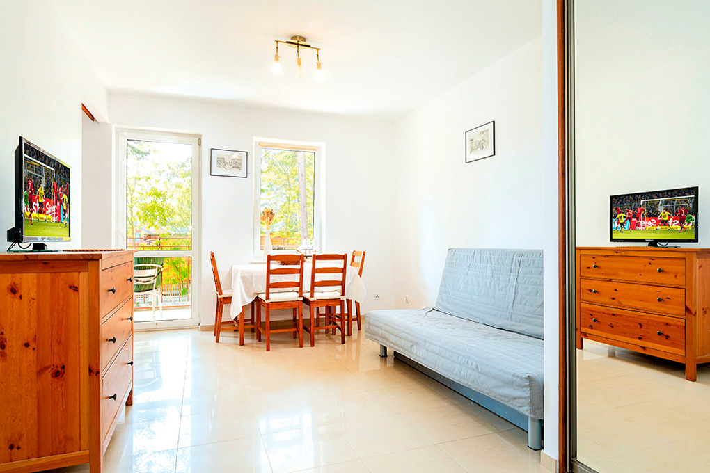 PL 10.23A Wohnung 2-4 Pers.: Freundliche 2-Zimmerwohnung mit 35 qm Wohnfläche, 1. Etage. Wohn-/Essraum mit Sitzgarnitur (Schlafsofa 2 Pers.), Sat-TV, Esstisch, kleiner Küchenzeile (2 E-Platten). Doppelzimmer. Bad/WC. Balkon mit Sitzmöbeln.