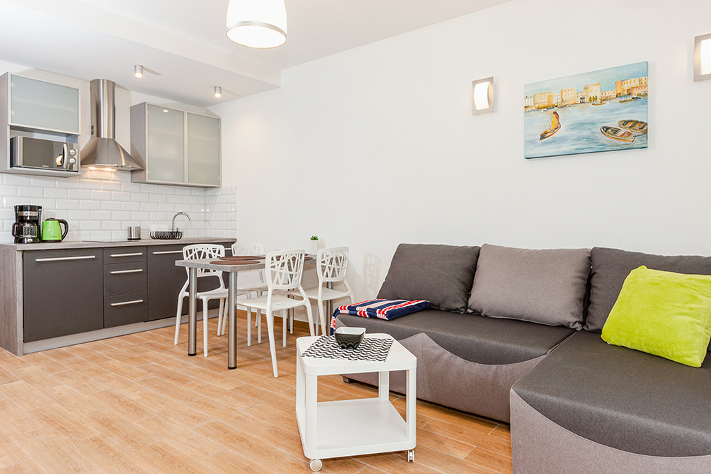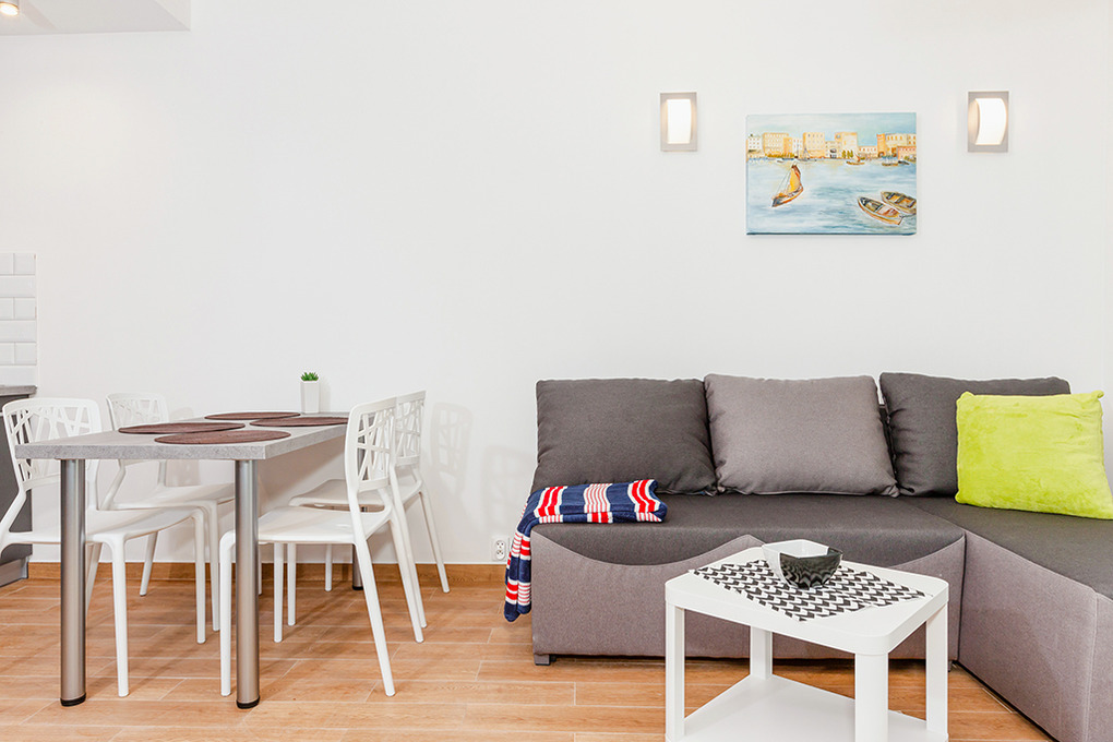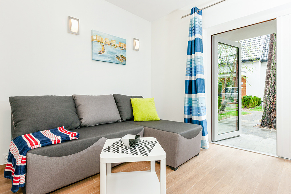 PL 13.3 Ferienhaus 2-6 Pers.: 3-Zimmer-Reihenhaus mit 55 qm Wohnfläche über 2 Etagen. Parterre: Großzügiger Wohn-/Essraum mit Ecksofa (Ausziehcouch 2 Pers.), Sat-TV (deutsche Programme), Internet (W-Lan), Esstisch, moderner Küchenzeile (2 E-Platten Ceranfeld, Abzugshaube, Mikrowelle, Spülmaschine). Bad/WC. 1. Etage: Doppelzimmer. 2-Bettzimmer. Terrasse mit Sitzmöbeln, Grill.