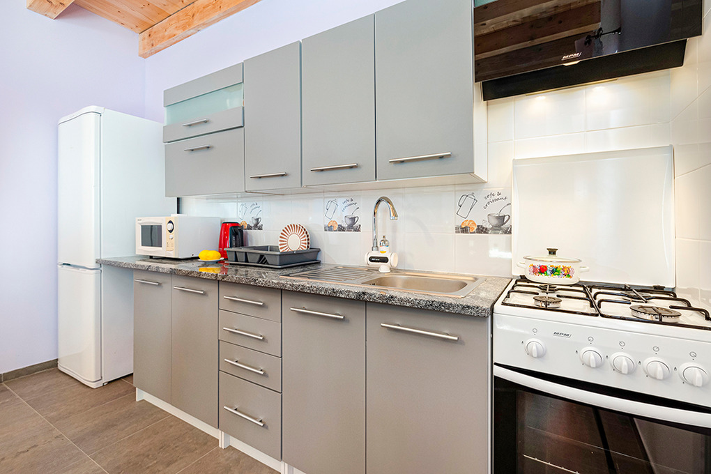 Drei große, schöne, komfortable Ferienhäuser mit moderner Einrichtung. Kostenloses Internet über W-Lan. Zentralheizung, teils Fußbodenheizung. 2 Balkone. Terrasse mit Sitzmöbeln, Grill. 2 Parkplätze/Haus auf dem umzäunten Grundstück.