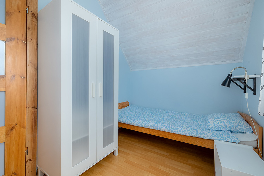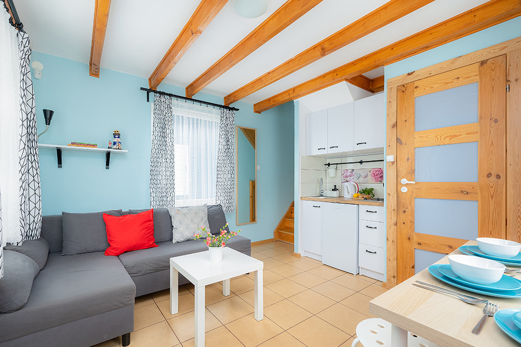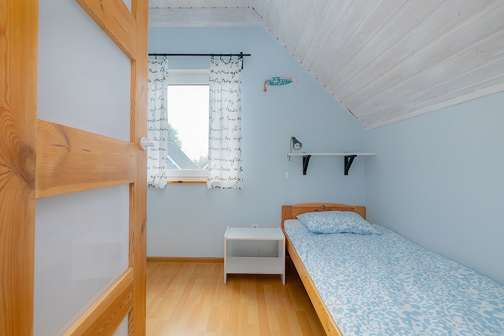 PL 31.21 Ferienhaus 2-6 Pers.: 3-Zimmerhaus mit ca. 40 qm Wohnfläche über 2 Etagen. Parterre: Wohn-/Essraum mit Ausziehcouch (2 Pers.), Sat-TV, Esstisch, Küchenzeile (2 E-Platten). Bad/WC. 1 Etage: Doppelzimmer. Kleines 2-Bettzimmer.