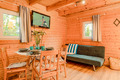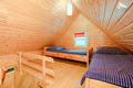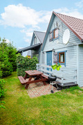 PL 31.26 Ferienhaus 1-4 Pers.: Gemütliches 2-Zimmer-Ferienhaus mit ca. 50 qm Wohnfläche über 2 Etagen. Wohn-/Essraum mit Sofa, Sat-TV (deutsche Programme), Esstisch, Küchenzeile (2 E-Platten). Bad: Du, Wb, WC. Vom Wohnraum Holztreppe ins Dachgeschoss: 4-Bettzimmer mit Doppelbett, 2 Einzelbetten.