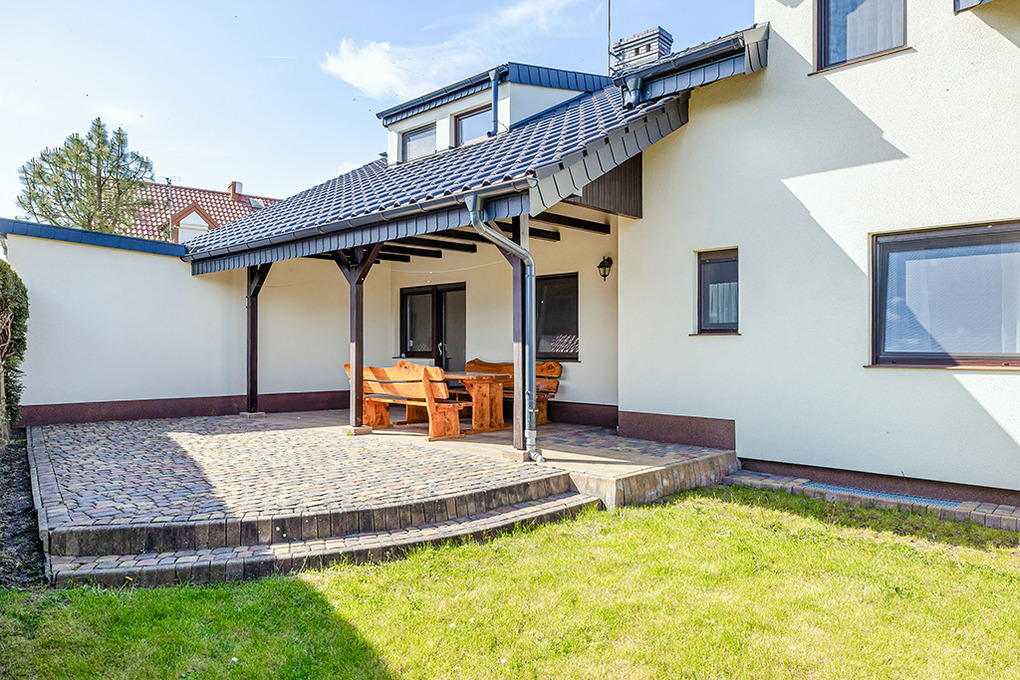 Ort: Trzesacz (Hoff). Sehr gute, ruhige Lage in einem schönen Wohnviertel. Ostseestrand 200 m. Einkaufen 100 m.