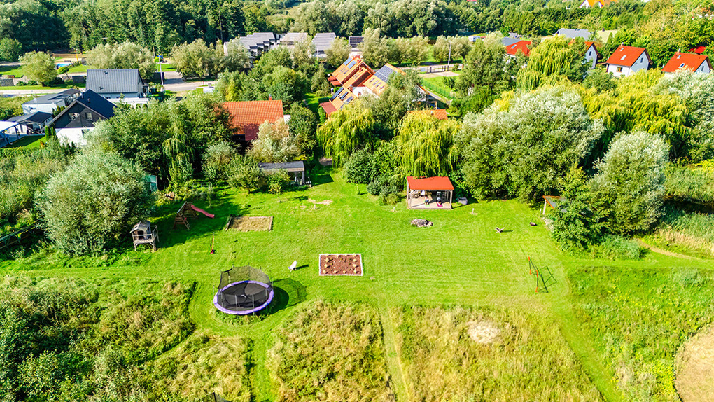 Ort: Niechorze. Idyllische Lage auf einem weitläufigen Wiesengrundstück am Ortsrand. Ostseestrand 950 m. Ortsmitte 700 m.